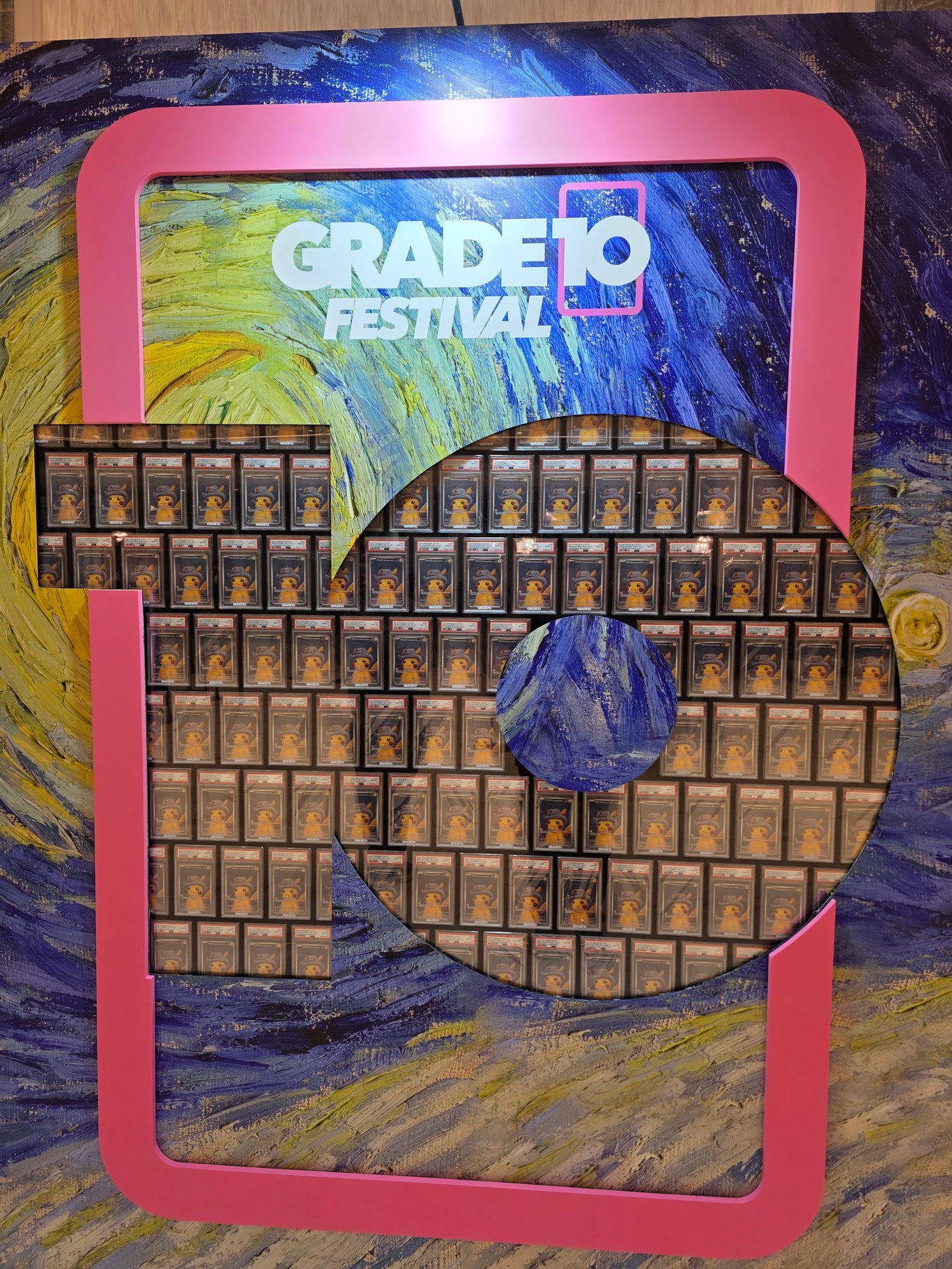 還沒入場,已經被一幅滿滿的鑑定卡牆吸引眼球,整幅都是梵高皮卡丘,