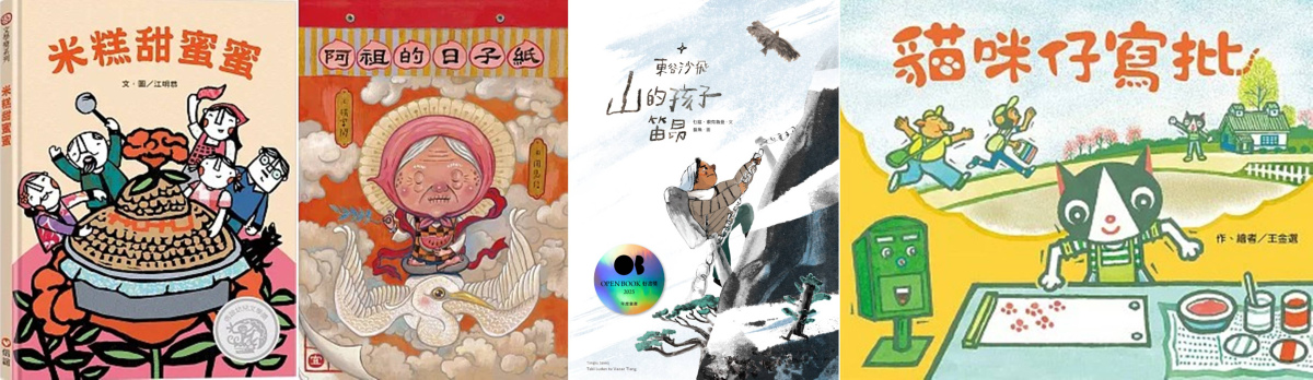 童書中的《米糕甜蜜蜜》呈現傳統客家庄的婚禮習俗,《阿祖的日子紙》則是臺南的庶民生活寫照,《東谷沙飛:山的孩子笛昂》以布農族男孩笛昂的眼光,仰望族人心中的聖山——東谷沙飛(即玉山),從他與長輩登山的過程中,更深刻感受神話傳說、自然智慧對族人靈魂的滋養。