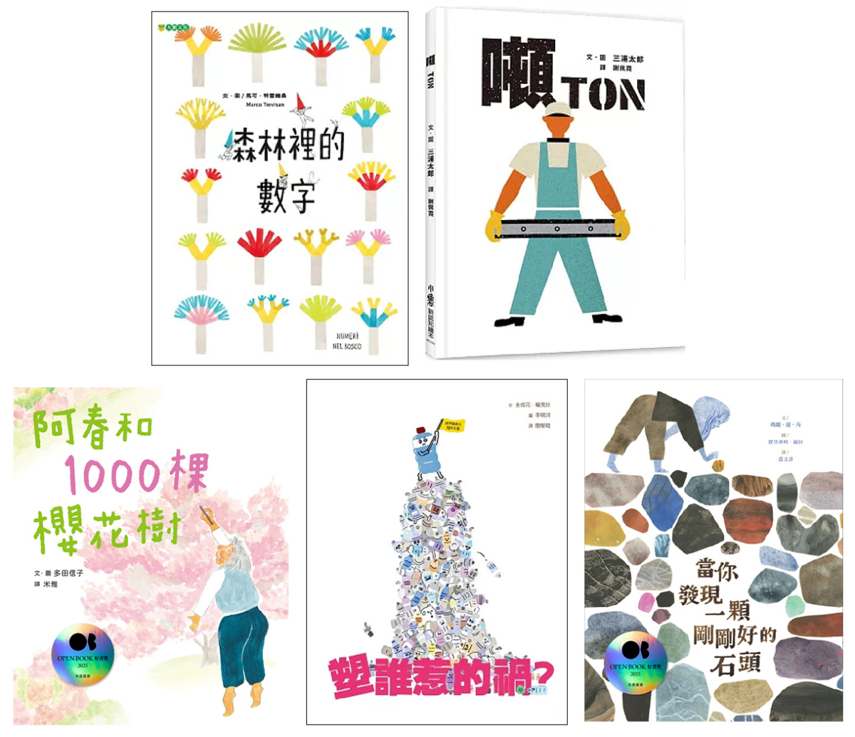 另外,今年的童書花園裡還有《森林裡的數字》、《噸》可以認知學習數字或重量單位概念;有《阿春和1000棵櫻花樹》這般純美歌頌一群老人建構桃花源夢土的故事;有《塑誰惹的禍?》讓寶特瓶現身抗議人類發明出它們,現在又嫌棄它們為環境帶來危害的心聲;有《當你發現一顆剛剛好的石頭》顯現石頭的靈性,在與人的關係建立中凸顯出相互依存的溫度,內含一種深邃遼遠的宇宙觀。
