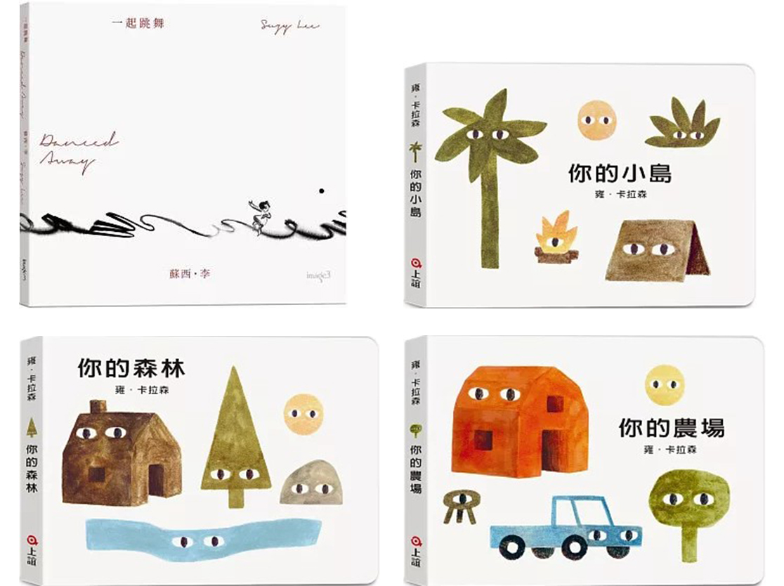 蘇西.李《一起跳舞》完成一次跨界結合的嘗試,配合著音樂一起聆聽閱讀,更能感受畫面的律動。雍.卡拉森(Jon Klassen)《你的地方系列:你的小島、你的農場、你的森林》是三本獻給低幼孩子的繪本,所有幾何簡約的物件圖像,都有雙比例略大的眼睛,帶著淘氣張望著空間與東西建構的立體關係。