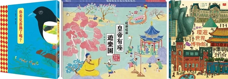 還有三本與博物館相關的書,《你看見喜鵲了嗎?》以故宮博物院國寶《清明上河圖》為本,輔以現代的畫風、故事和沉浸遊戲,展開一場追尋喜鵲的奇遇。《故宮好好玩2:從前從前皇帝有座遊樂園》以季節月令民俗的主題,帶著玩心遊賞典藏名作。《出發吧!環遊世界13大博物館》在紙上遊覽世界博物館精華,讀完眼界也被打開。
