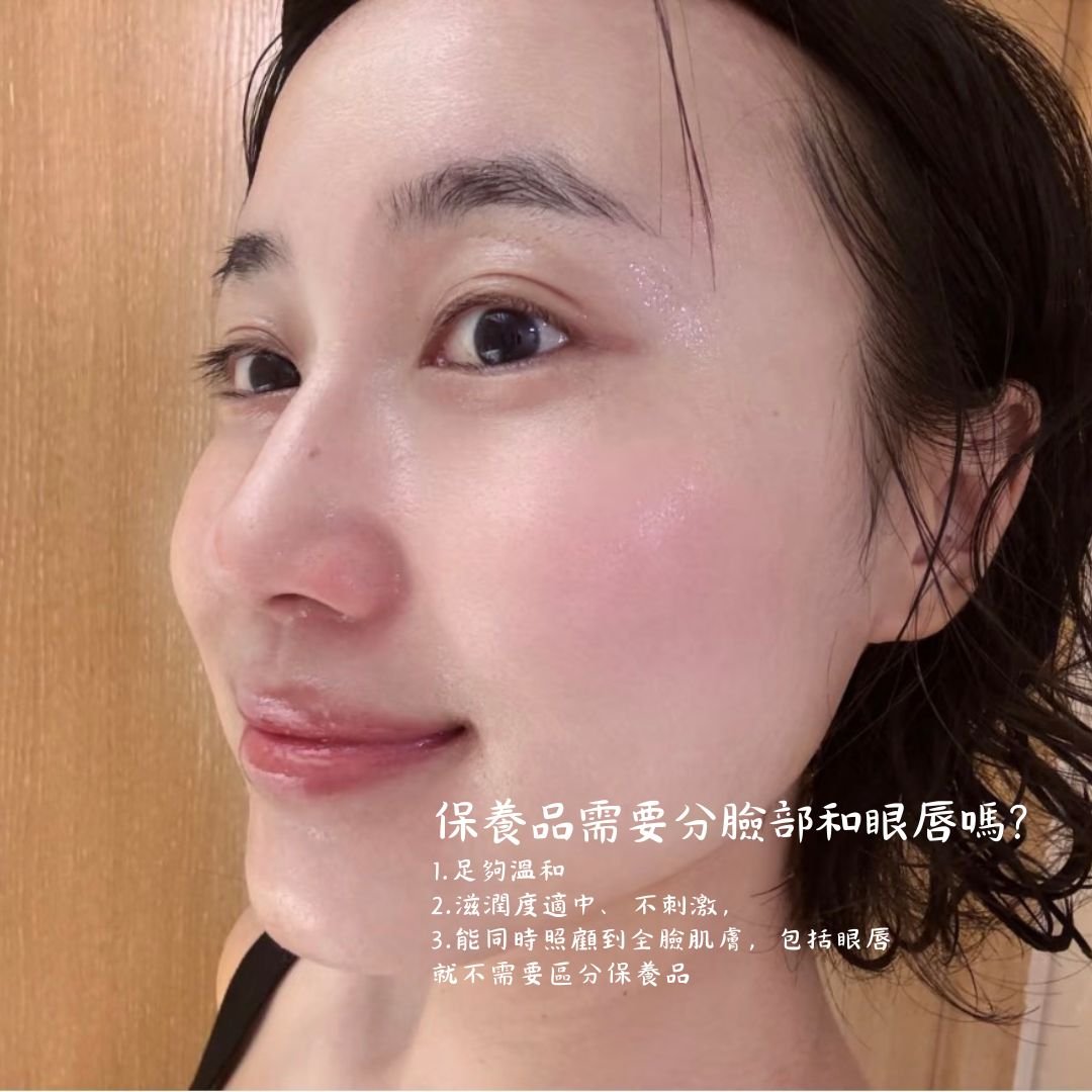 那實話反過來就是:保養品足夠溫和、滋潤度適中、不刺激,能同時照顧到全臉肌膚,包括眼唇。就不需要區分保養品。