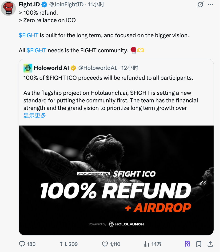 Fight.ID 是 UFC 的官方合作伙伴,而 UFC 又是全球最大的综合格斗赛事联盟,年办赛 40 多场,观众覆盖 7 亿人。代币 $FIGHT 去年 10 月完成了近 2 亿美元的公开发售,TGE 在即。