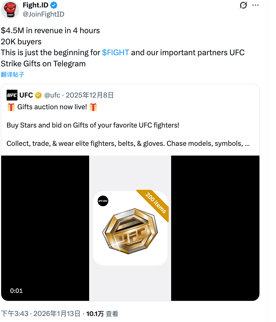 2025 年 12 月 7 日,Fight.ID 配合当周的 UFC 赛事,在 Telegram 就上做了一场数字藏品活动。