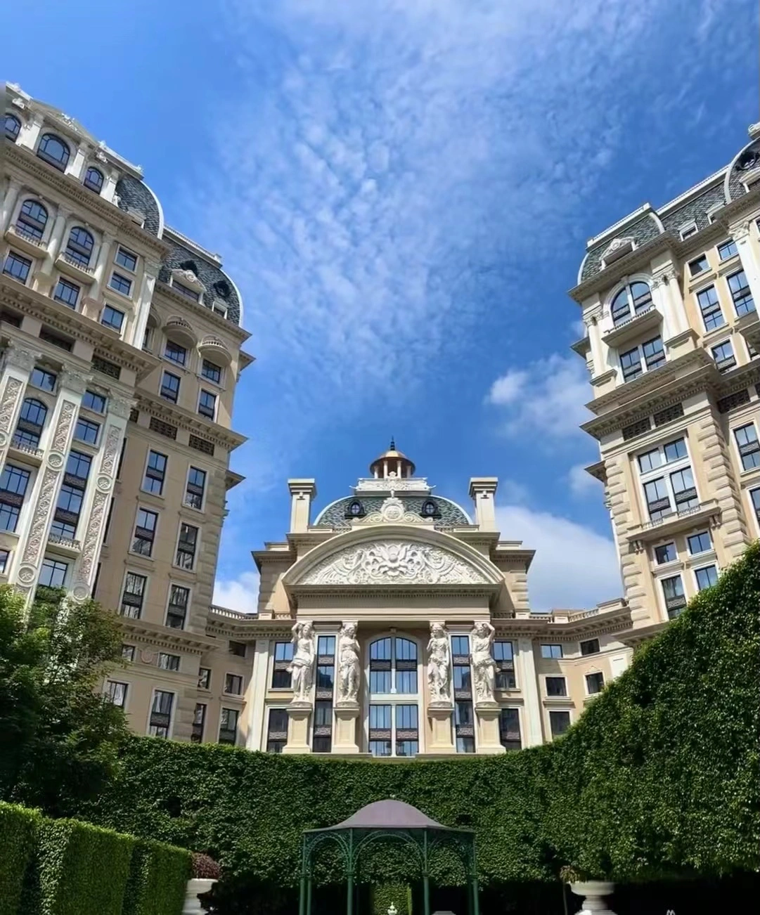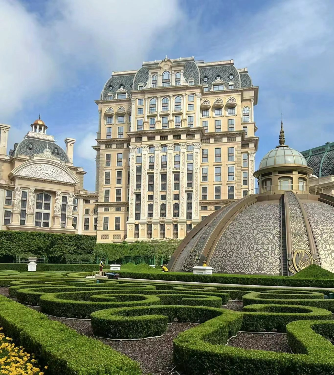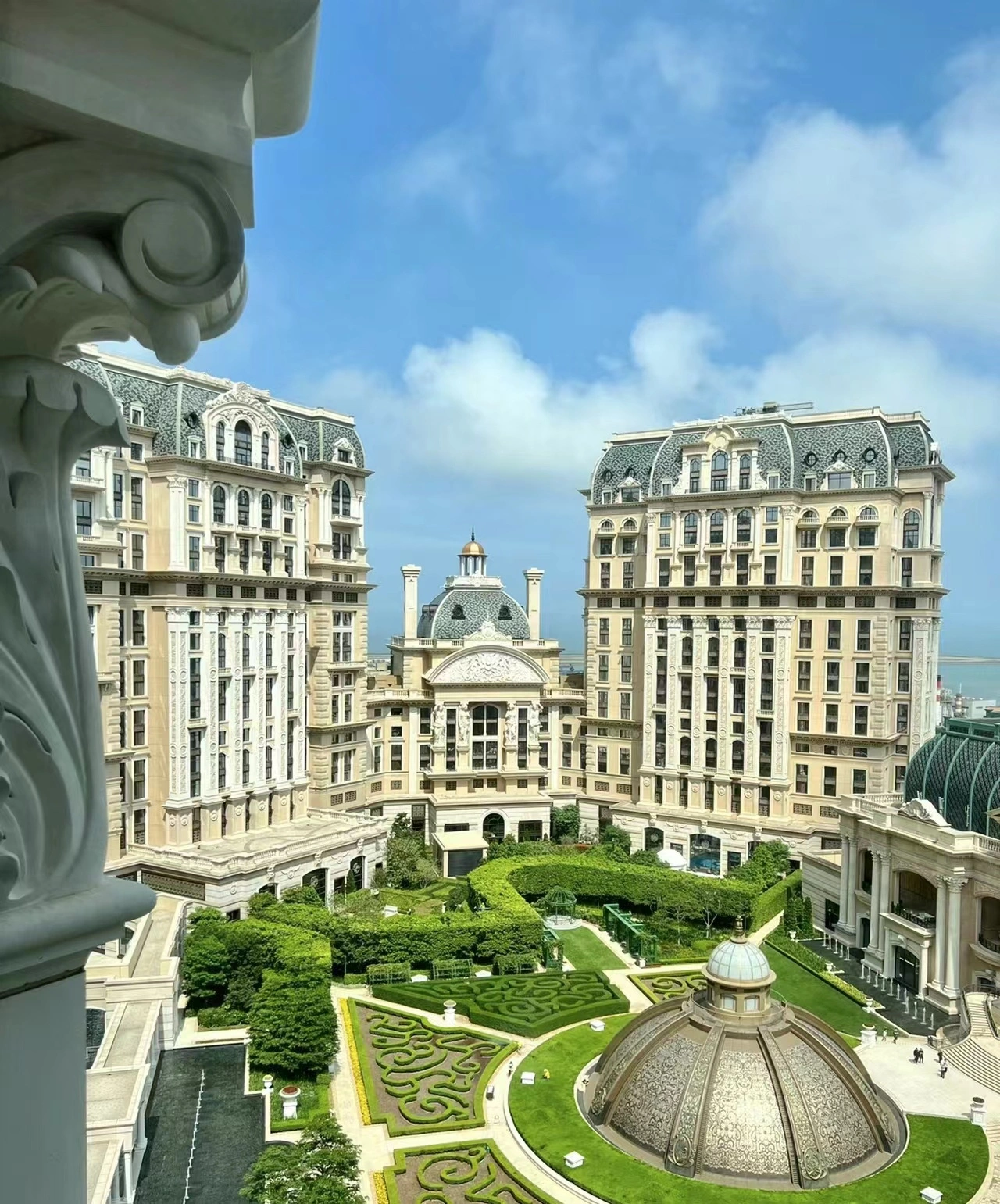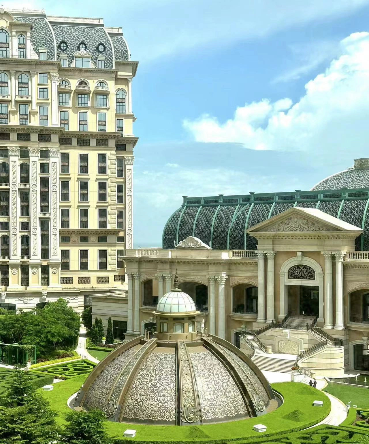 🏨 飯店位於澳門的心臟地帶,具體位置在路氹城金光大道,交通非常便利。從飯店大廳搭乘電梯直達頂層,空中花園的美景瞬間映入眼簾。 👀
