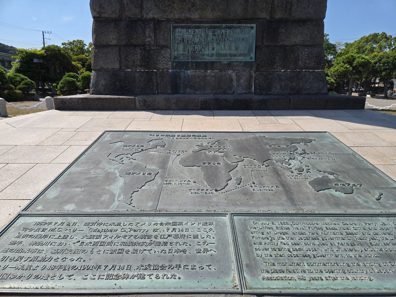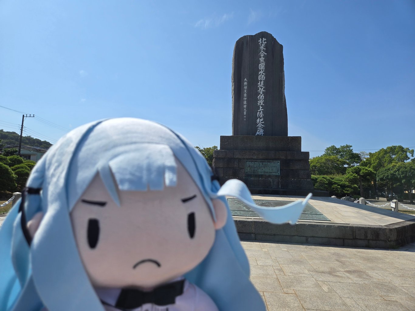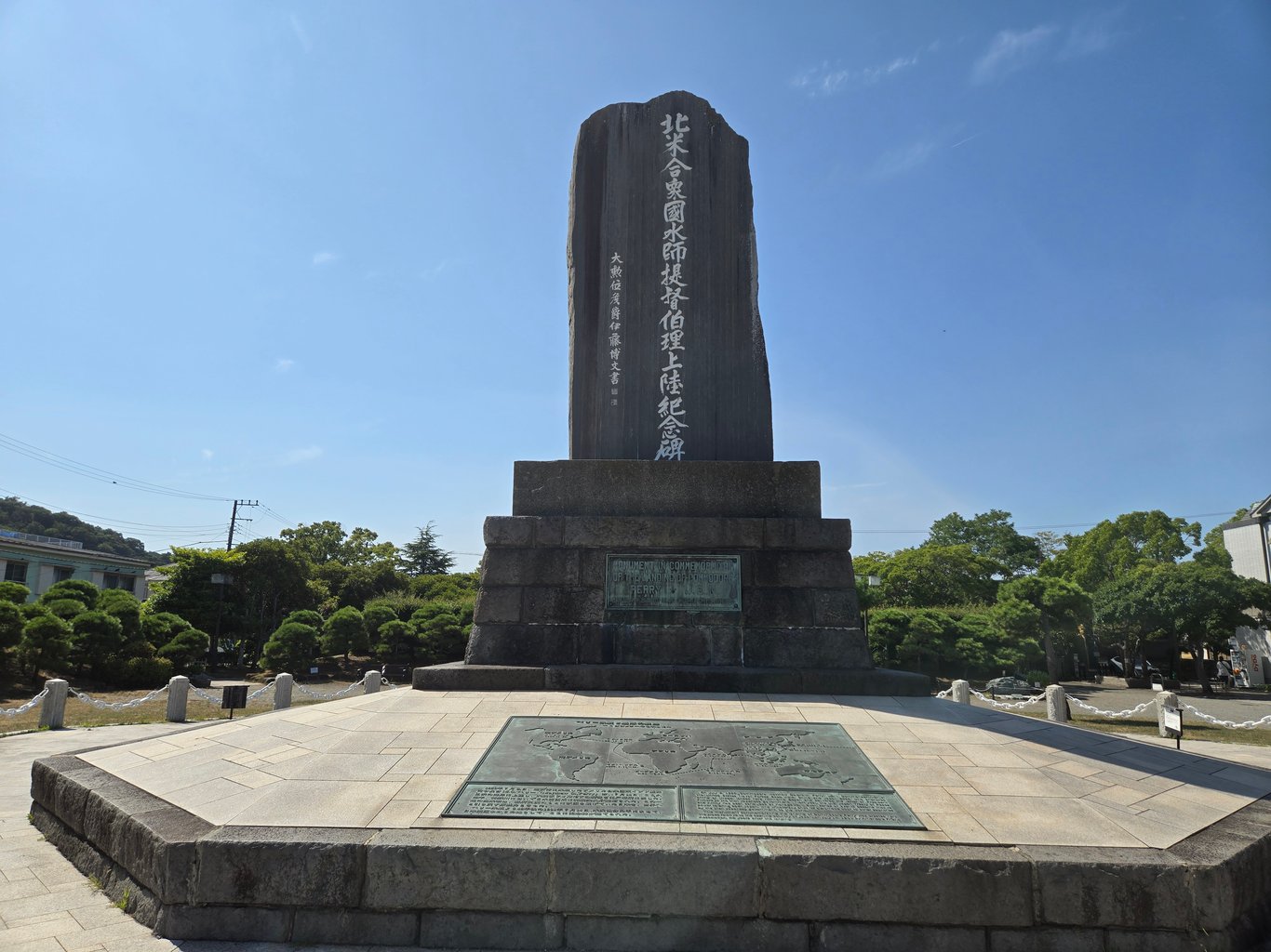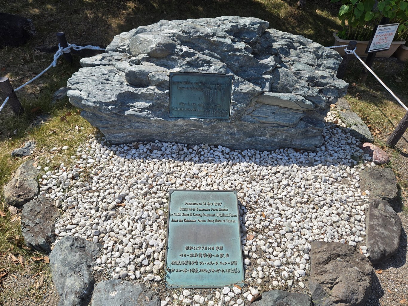佩里公园里另一个看点就是大量的纪念物。最显眼的当然是伊藤博文手书的黑船来航纪念碑。此外因为一百多年里浦贺本地一直和美国人有文化交流活动,各种纪念物陈列了不少,很多来自佩里的家乡。