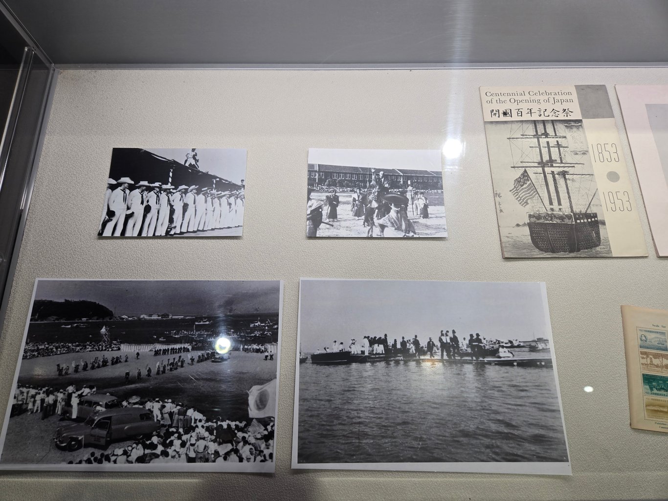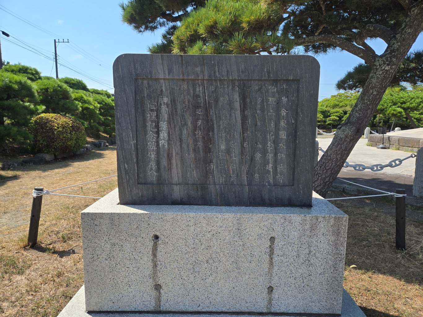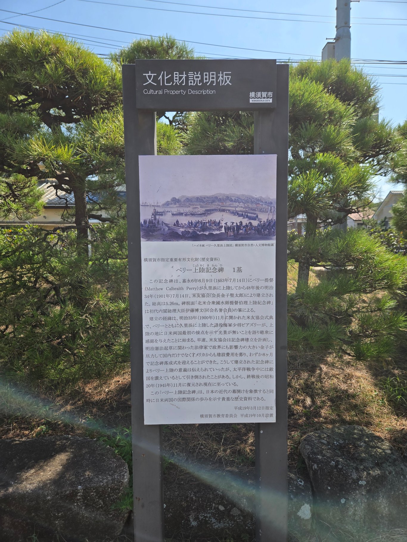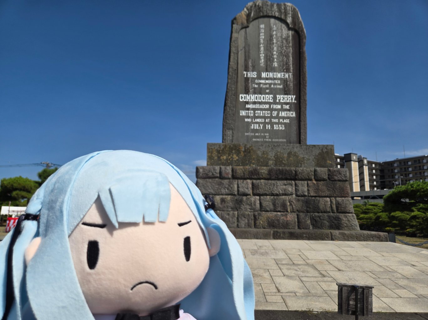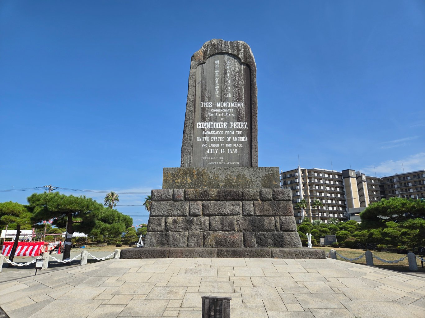 佩里公园里另一个看点就是大量的纪念物。最显眼的当然是伊藤博文手书的黑船来航纪念碑。此外因为一百多年里浦贺本地一直和美国人有文化交流活动,各种纪念物陈列了不少,很多来自佩里的家乡。