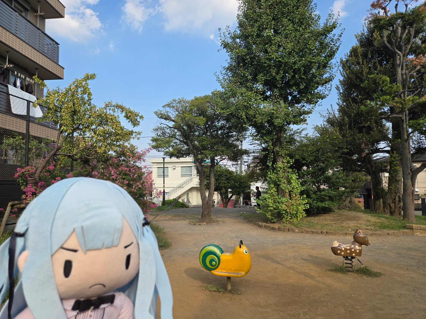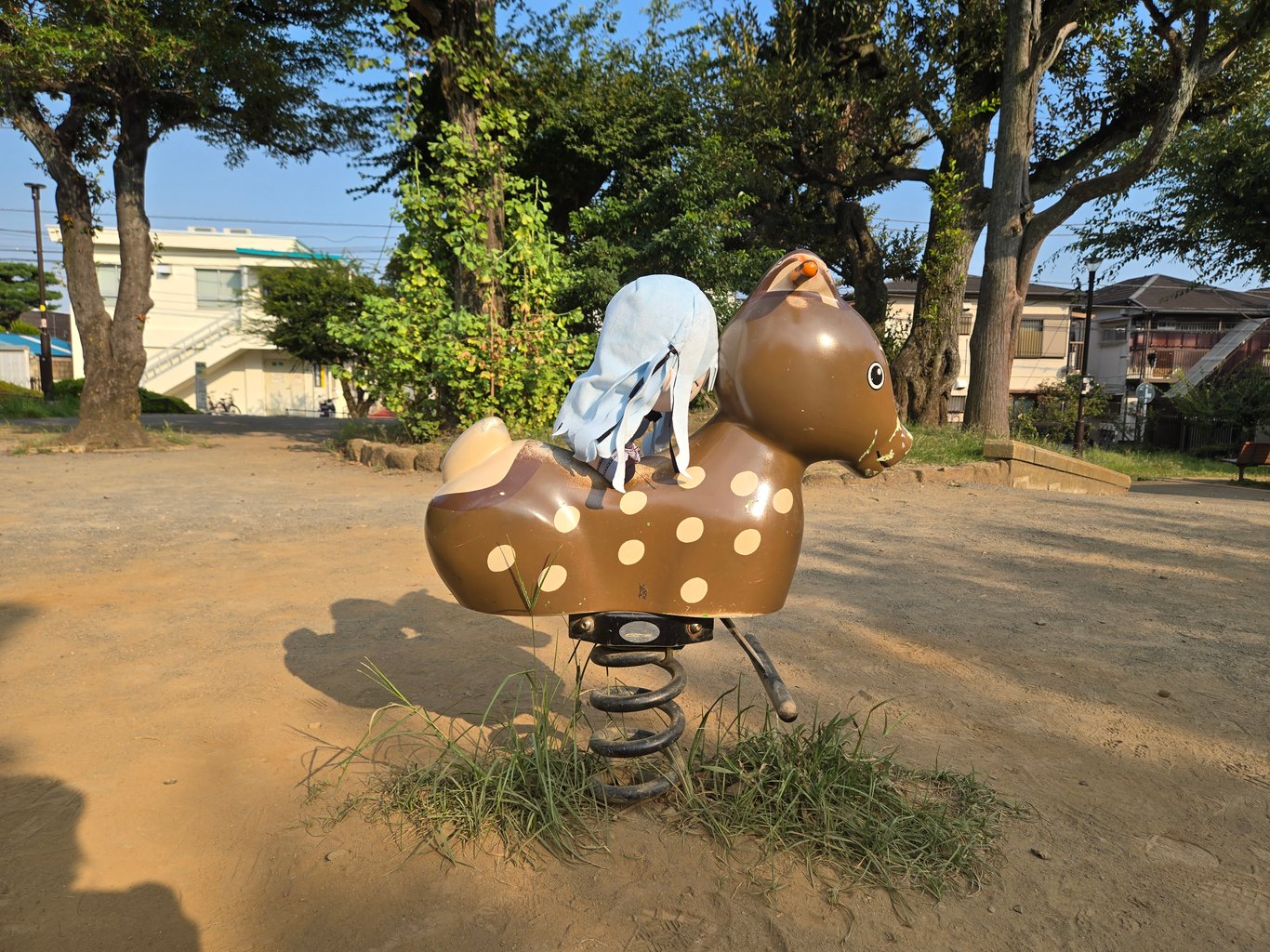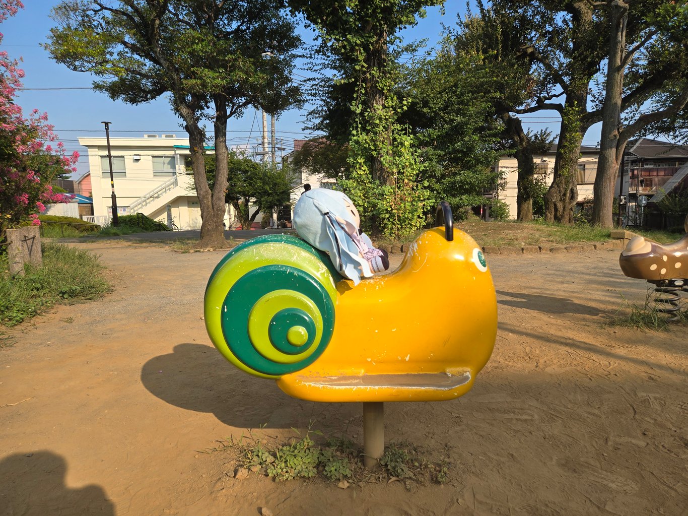 接下来我选择的探访地是どんぐりひろば公園,在再往北一点的地方,是EP4里喜多和凉骑弹簧马的地方。我让娃娃骑了一会,自己也骑了一会。这里也有人在打卡拍照,不过比合影墙安静很多。