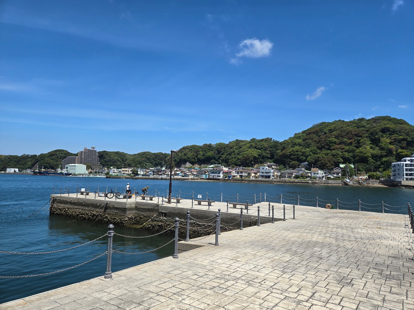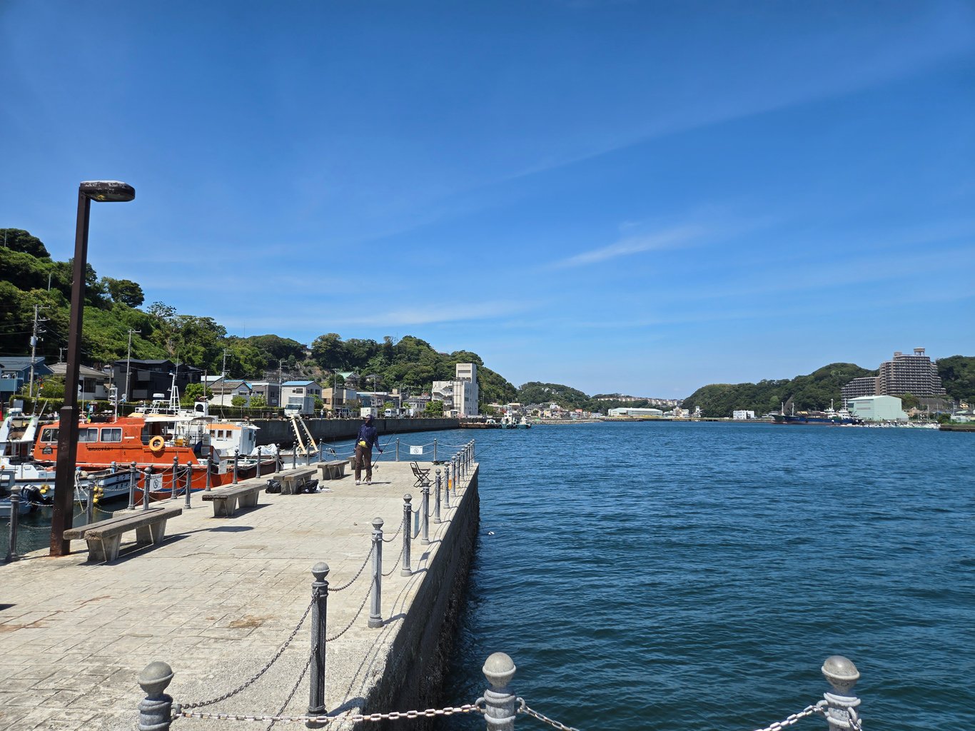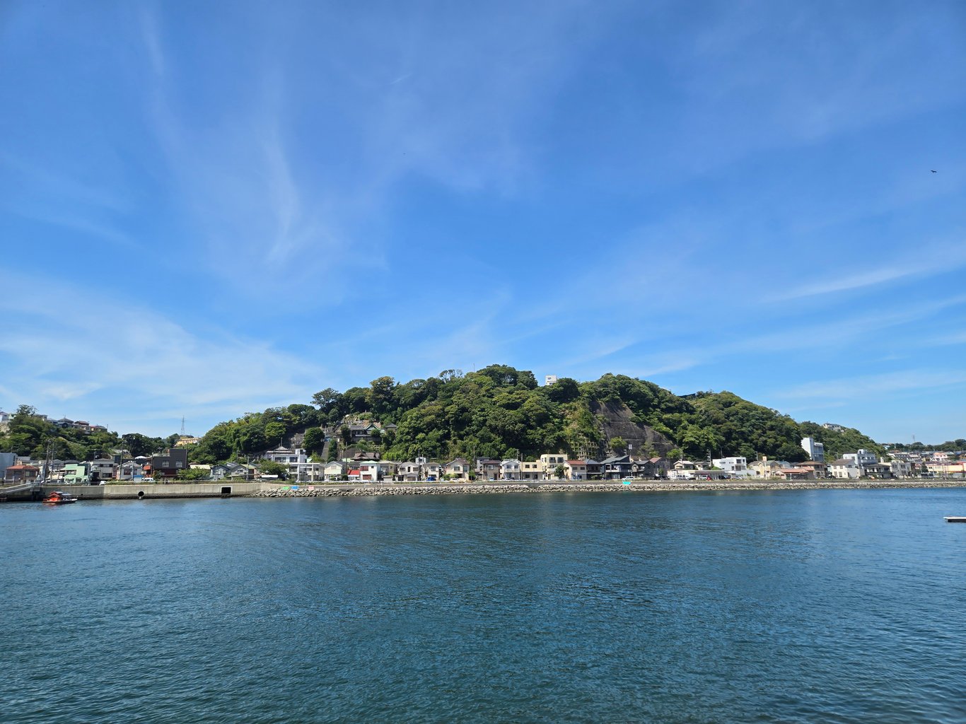 我沿着浦贺湾步行。说实话,浦贺湾的景色并没有想象的那么好。我一开始看地图,以为是一个两岸是峭壁的峡湾,所以来徒步,但没想到其实是一个裂缝,两边是低矮的山峦,海岸边全是围墙和建筑,散步体验并不好。