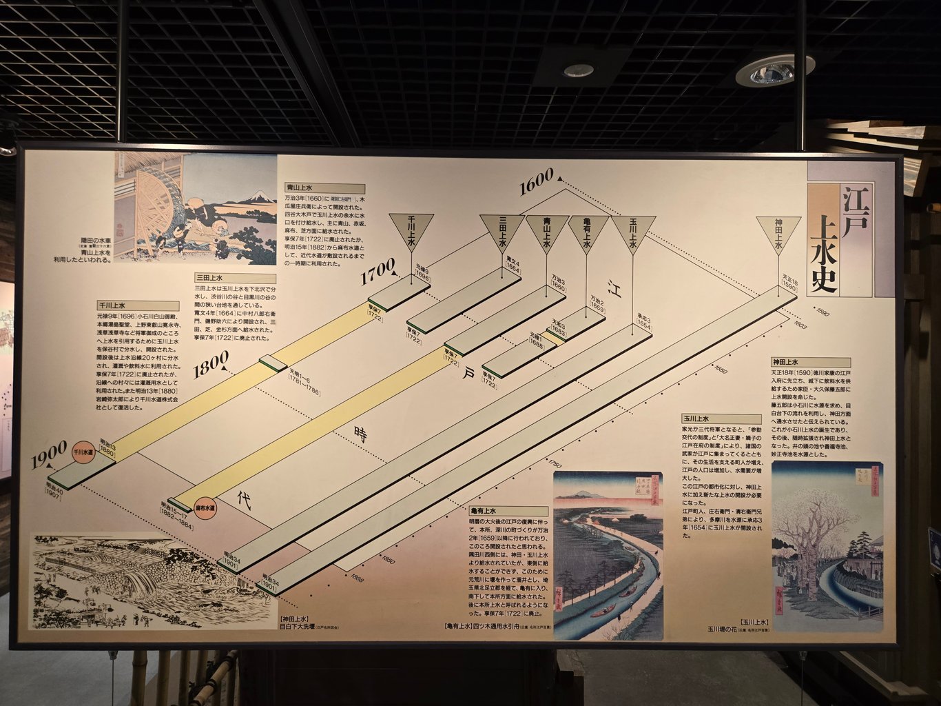 9月13日周六,下午又出去了一趟,顺路去了东京都水道博物馆。这个博物馆环境优美,还不要钱。展览业非常好,讲了从江户到东京的城市供水发展史,还有不少实物。看了这个展览,我才知道江户城已经有一整套专门提供生活用水的水利系统了,果然是逆天的超级大城市。