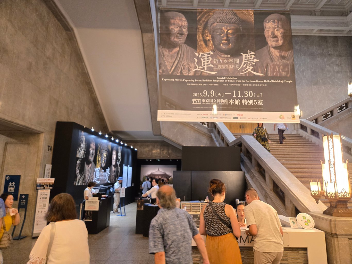 9月10日周三,上午有空,突发奇想想去趟东京国博,因为不是有个兴福寺北圆堂的展在展出,精神藤原怎么能不去看呢?结果出门前没看天气预报,到了东京国博后喜提暴雨,只能硬着头皮冲过暴雨抵达展馆。到了之后才发现,这个展览便宜是有原因的,因为展品很少,就是13世纪时的兴福寺北圆堂的真品,在一个小展览室内还原了北圆堂的布置。雕塑很精美,可惜不让拍照。看完特展后,在馆里看了一会常设展,趁雨变小赶快溜了。