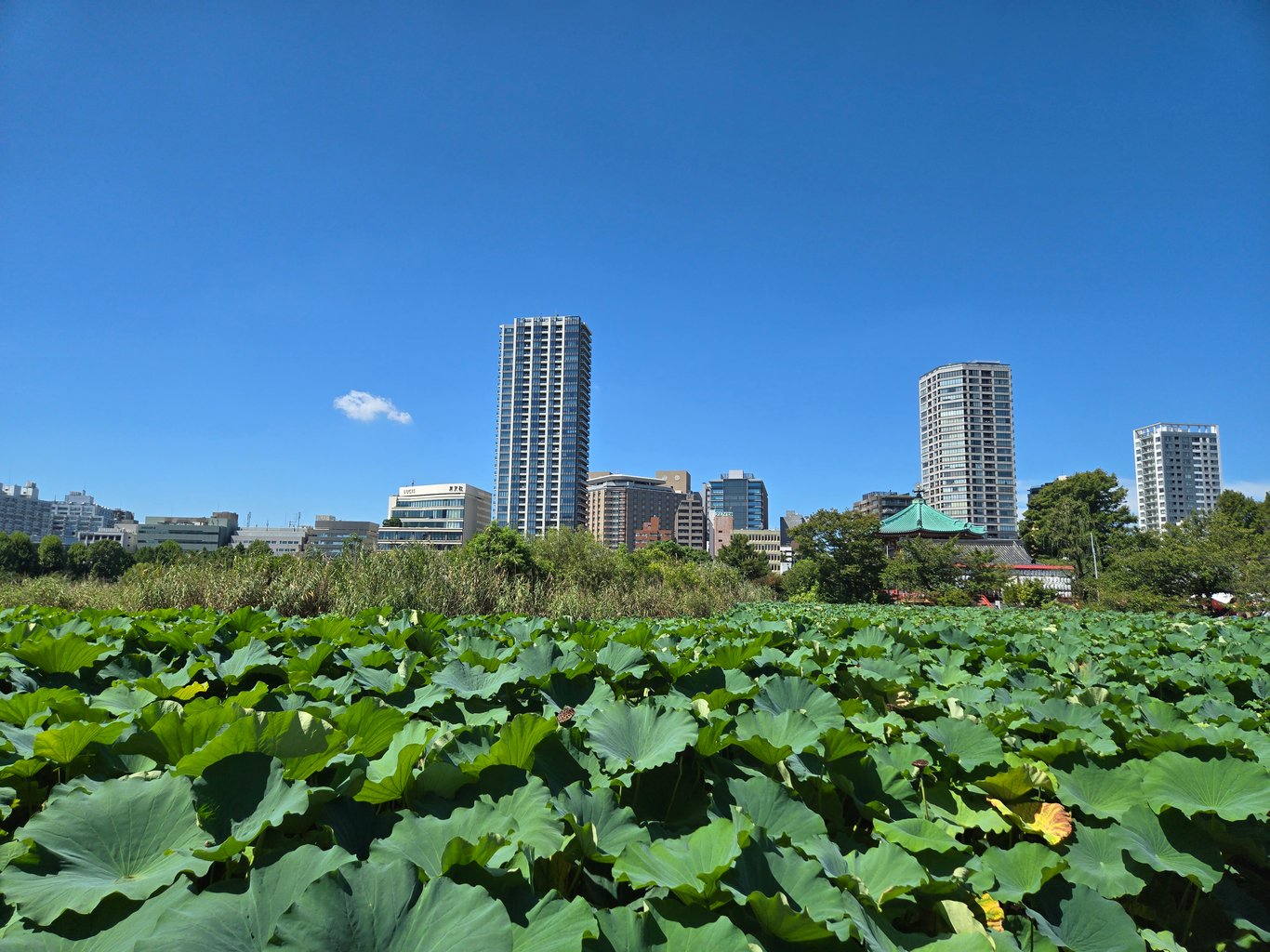 再次出门是9月6日,因为首六拜圣体,顺便就出去散散心。中午去上野公园散步,看到不忍池的荷花终于开了——我对东京的荷塘评价很低,大部分荷塘养护都很差,开花情况也很差,在东京看到荷塘,大多数是一片绿,只有几个挑头开花,确实不如国内很多县城荷塘。