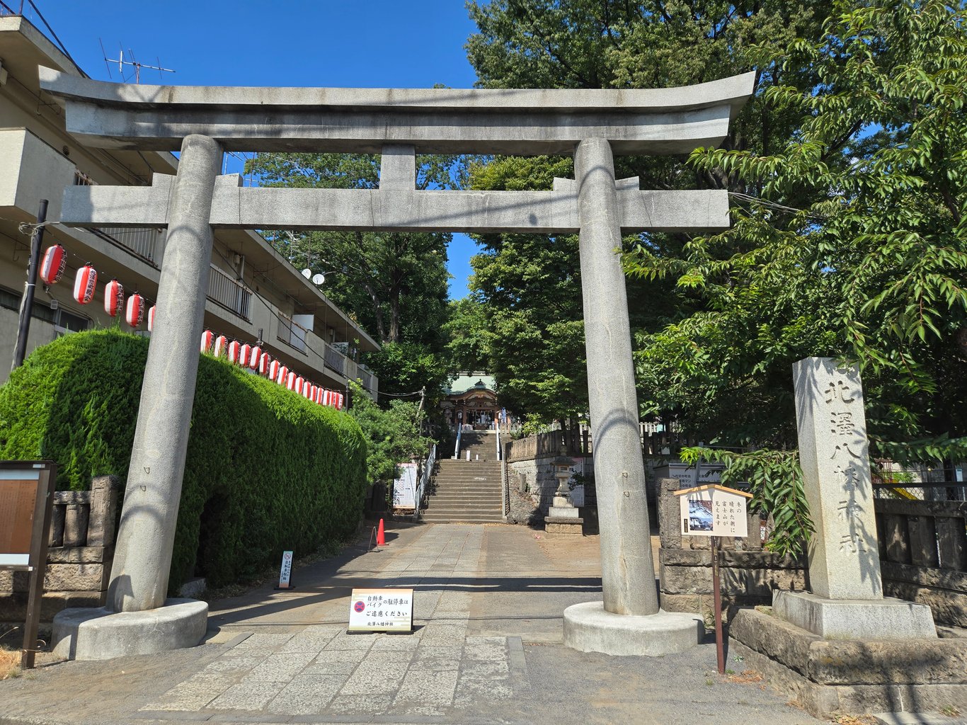 再出门要等到8月30日,也是周六天。我一时兴起爱动弹,想着往下北泽那边走走。第一个目标,其实也是最重要的目标,是走一遍八幡海铃带Mortis的回家路。路线很简单,从小田急下北泽站西南口出来,一直往南走,会路过Mortis撒娇的北泽八幡神社。北泽八幡神社旁边还有个庙,八幡山森岩寺,接着继续南行,就到了八幡海铃家,是一个公寓楼。这段路少围绕了一点,不是完全的直线。顺便,神社里在江户时代也是能看见富士山的。