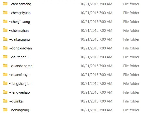 此次泄露文件中,也有大量文件中出现了来自MESA团队成员的名字。比如在一个名为“geedge_docs”的文件中,包含大量疑为积至公司员工的拼音命名的文件夹,如一个命名为“zhangchengwei”的文件夹,其中文件提及的中文名“张成伟”,其名字在一篇名为《一种音视频网络传输碎片化的整形方法及系统》的论文中被列为作者之一。