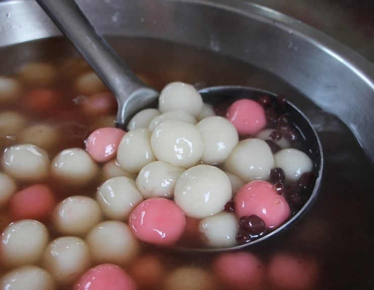結果她帶來的保溫鍋裡除了大顆芝麻湯圓,竟然還有滿滿紅白兩色小湯圓。