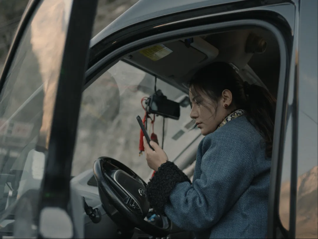 码儿的作品在当中仍是特别的。她不仅赋予了故事鲜明的地域风貌,且通过语言节奏的转换悄然改变了影像质感。还有作为女性,她特意在客车上设置了一位与自己同名的藏族阿妹,脸庞还青涩,但已怀有身孕。这是她对于命运与偶然的注视 —— “如果不出来读书,那我就是她。”