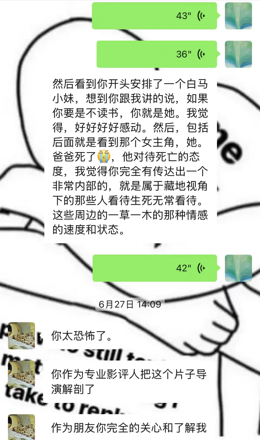 她处理的并不是传统和现代的冲突,而是现代化、城市化和离散带来的结果。这种“中间性”让她从根本上区别于万玛才旦等前辈藏地创作者。