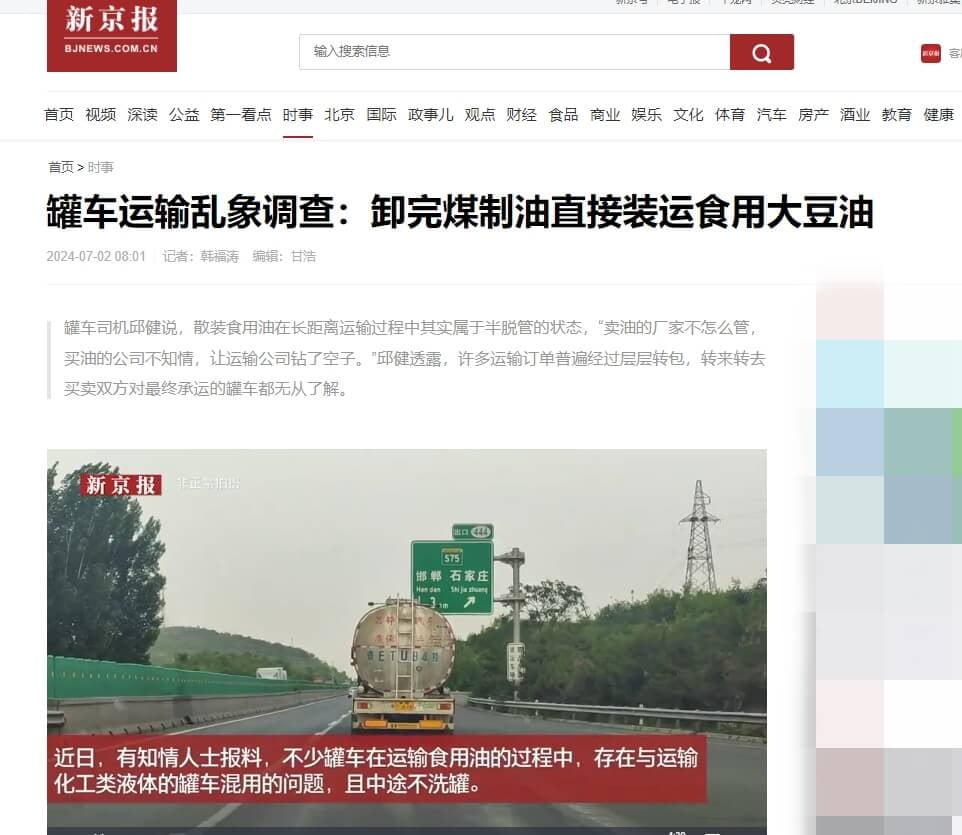 2024年7月2日,《新京报》刊出韩福涛等人完成的报道,揭露部分油罐车在未清洗油罐的情况下混运大豆油。报道刊出后引起社会关注,官方随即介入调查。然而,随着舆论发酵,韩福涛的微博帐号突然消失,搜寻显示“用户不存在”。不少网民留言关切其人身安全,并质疑平台封号的理由。