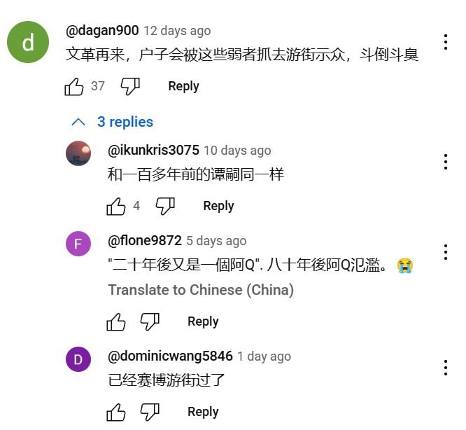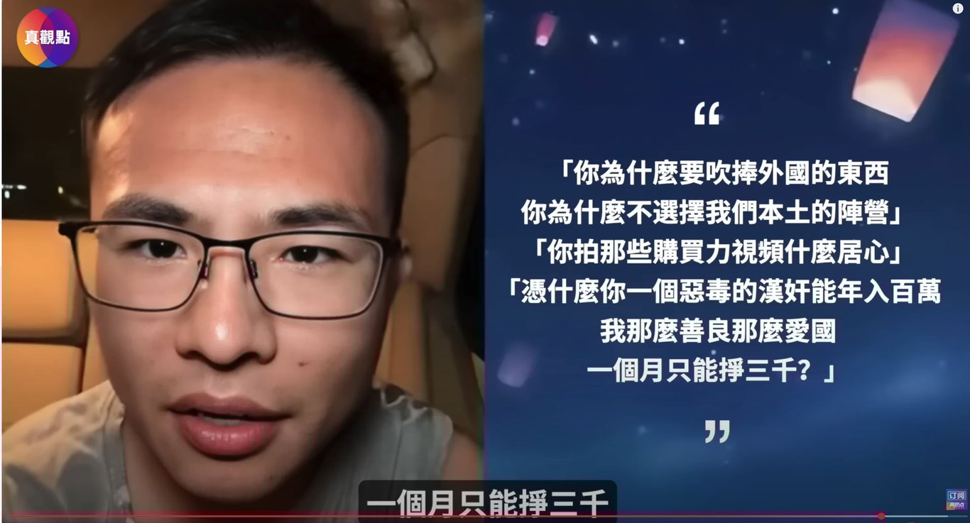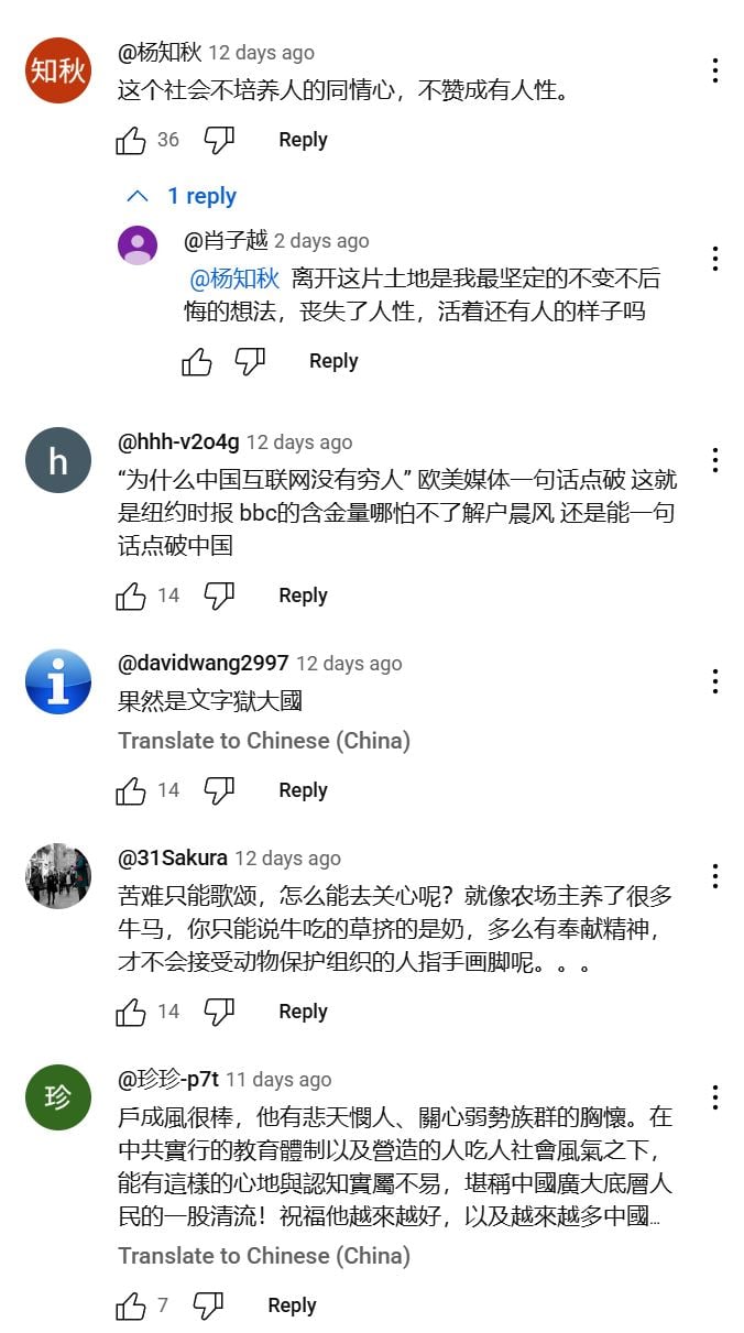 他說自己在美國住了十七年,卻指責戶晨風不愛國;可他死也不願離開美國回到他口中的祖國生活;當被要求「下樓拍個視頻」以證明戶晨風的說法有無虛實時,他卻連露面都不敢,反而花了三十三分鐘挑剔質問、惡意拆解,只為了使壞。這種嘴上正義、實際怯懦的行徑,正是當代網路暴力的縮影。