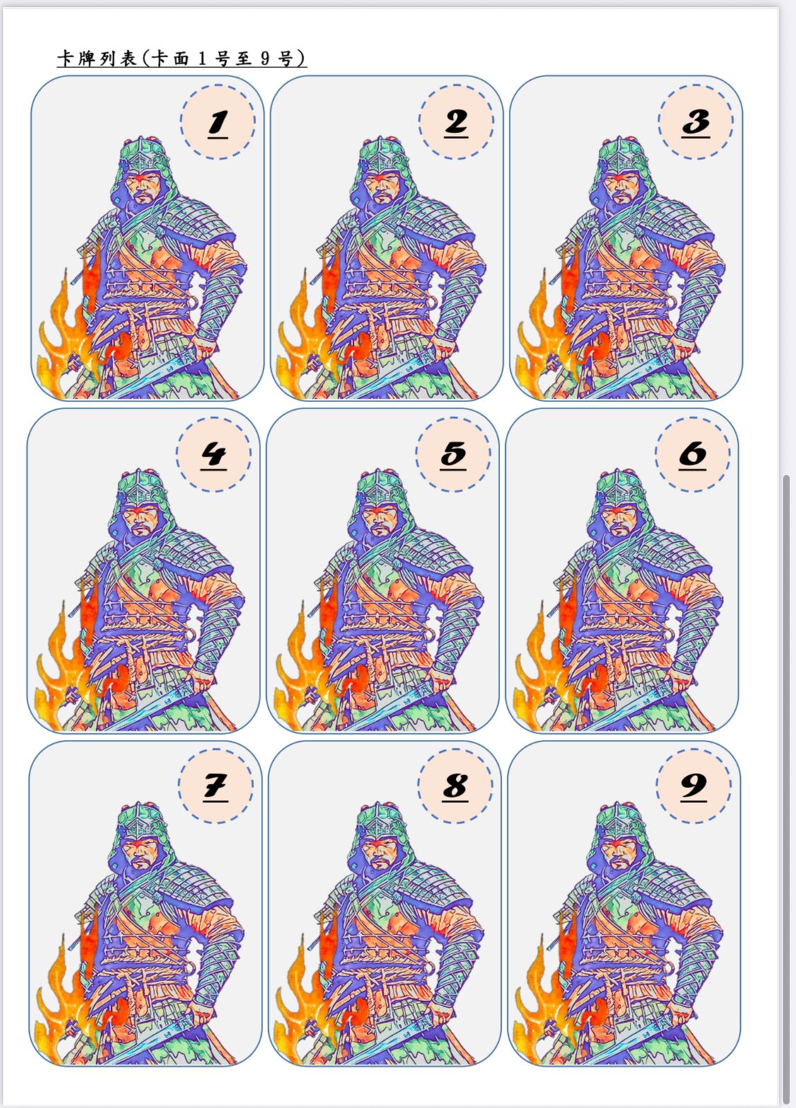 卡 牌—9 张 (为 数 字 1 至 9 的 标 准 尺 寸 卡 牌 )