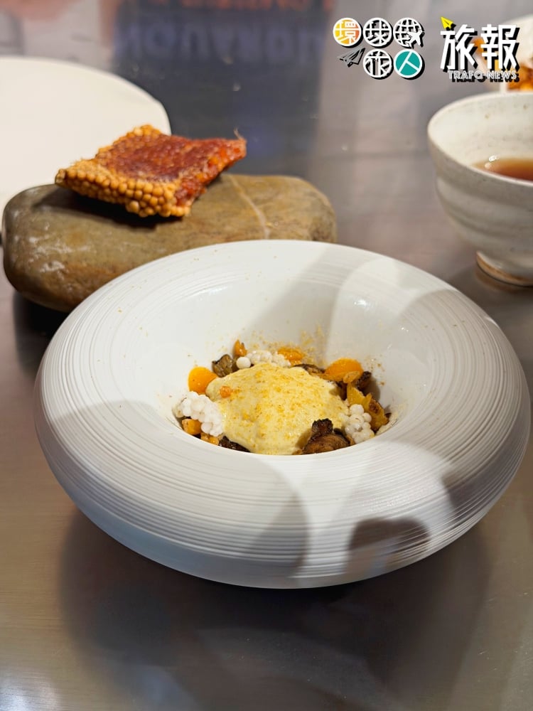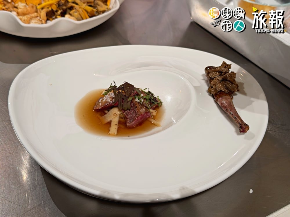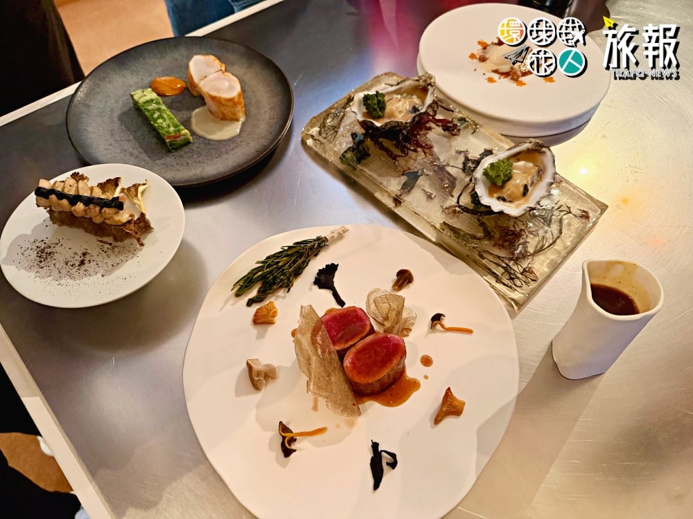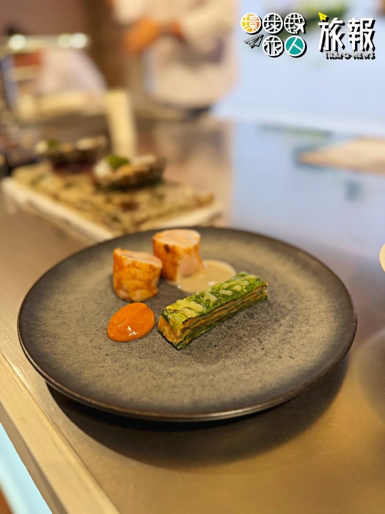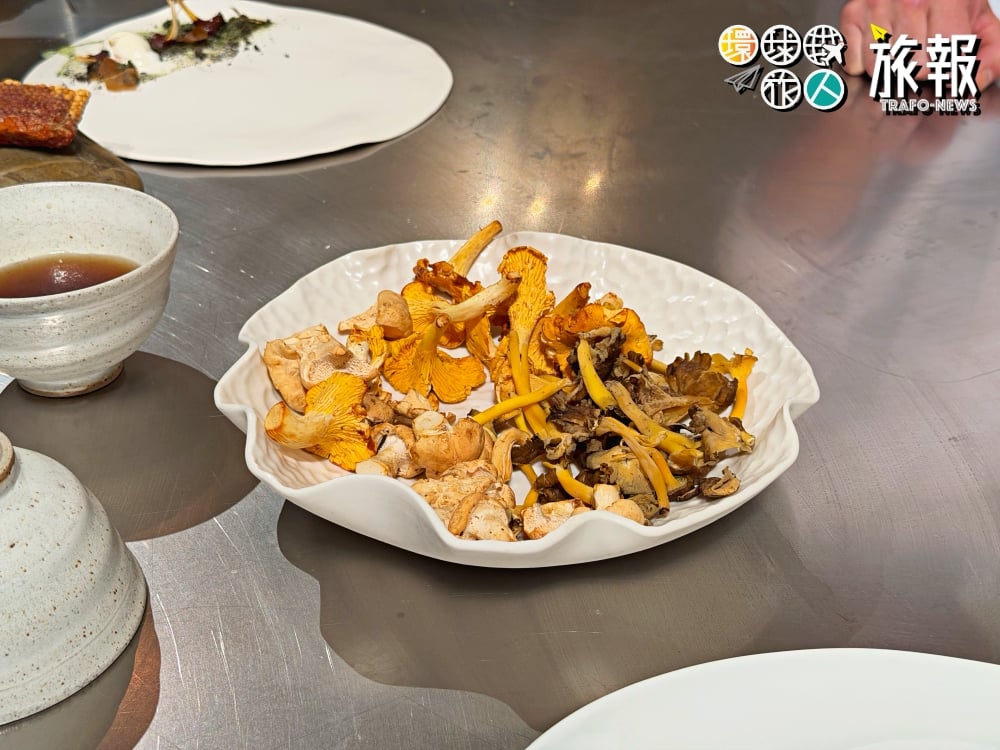 緊接著是跨大西洋的連線。加拿大綠星餐廳 Auberge Saint-Mathieu 的主廚帶來了北美的視角。作為綠星(Green Star)得主,他更關注採集的碳足跡與零廢棄烹飪。他展示了如何使用蘑菇的邊角料製作高湯與調味粉,展現了極致的環保美學。