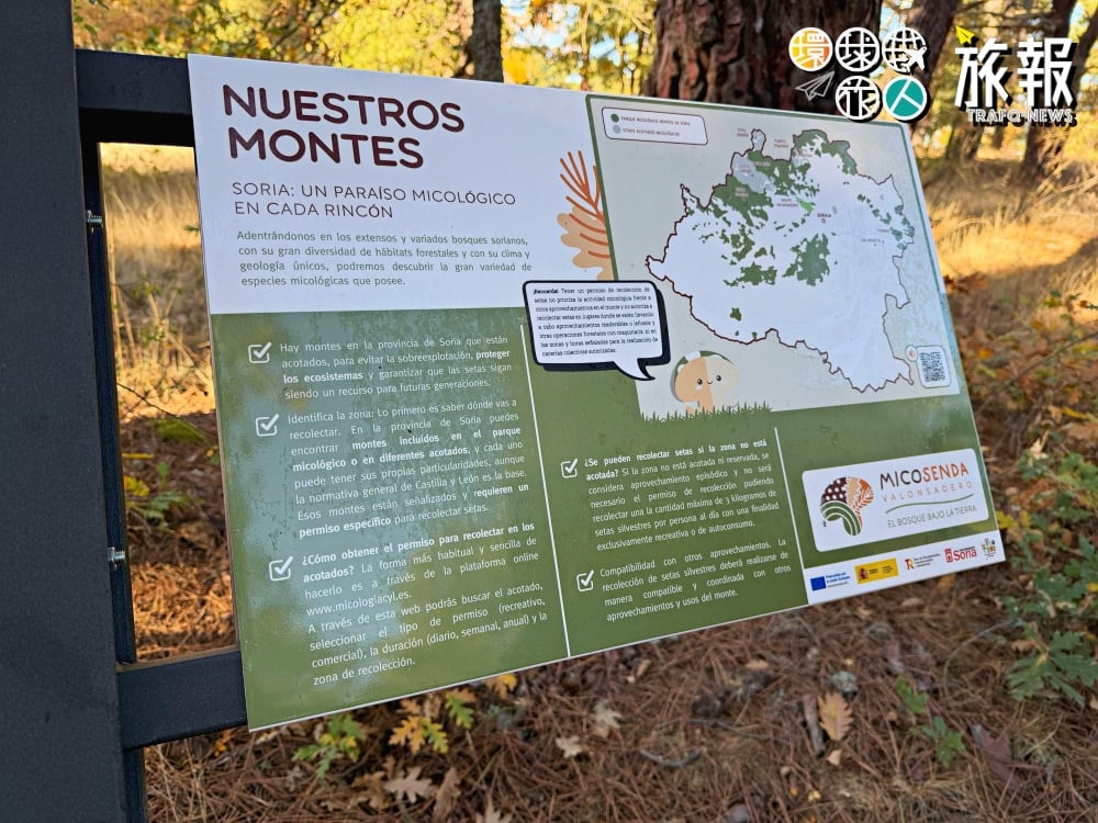 週一清晨八點,天色微亮,大會的第一個行程並非坐在舒適的會議廳,而是將所有人拉進了 Valonsadero 森林。這是索里亞最標誌性的自然公園,跟隨當地的真菌學嚮導,進行「實地識別工作坊」。這裡沒有PPT,教材就是腳下的土地。嚮導指著一株看似普通的 Lactarius deliciosus(松乳菇,當地人稱為 Níscalos),解釋它與周圍松樹根系的共生關係。
