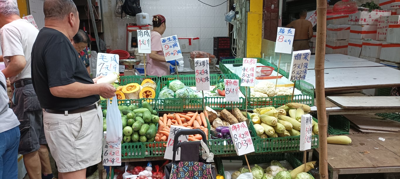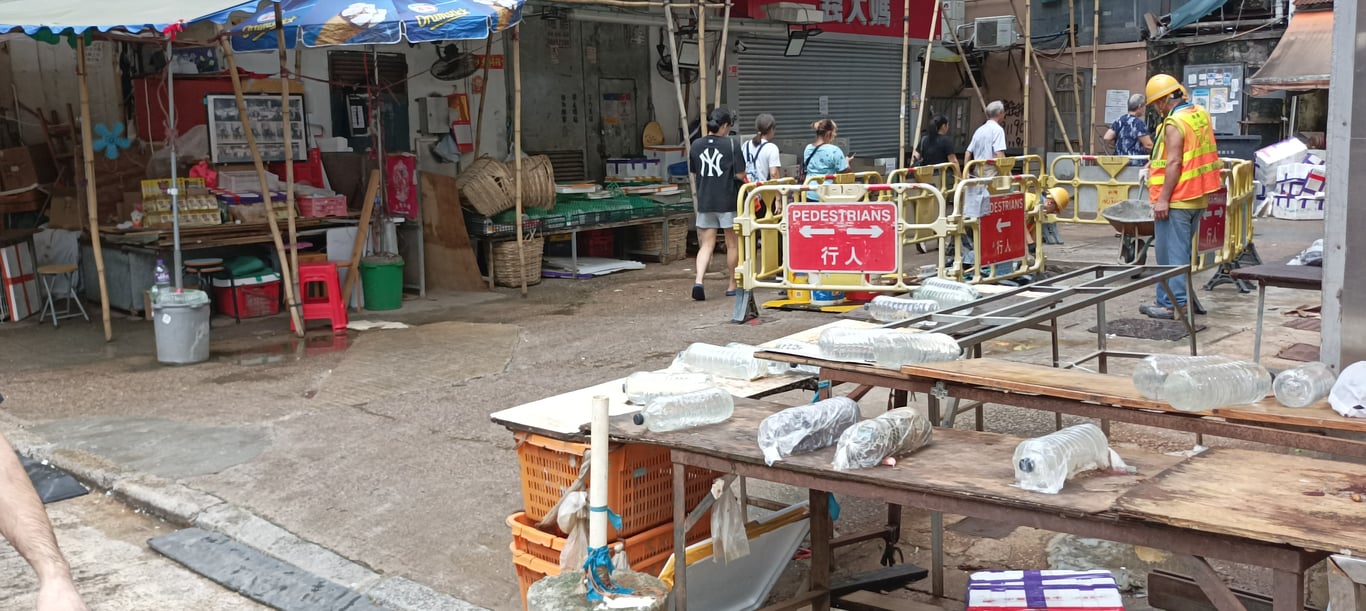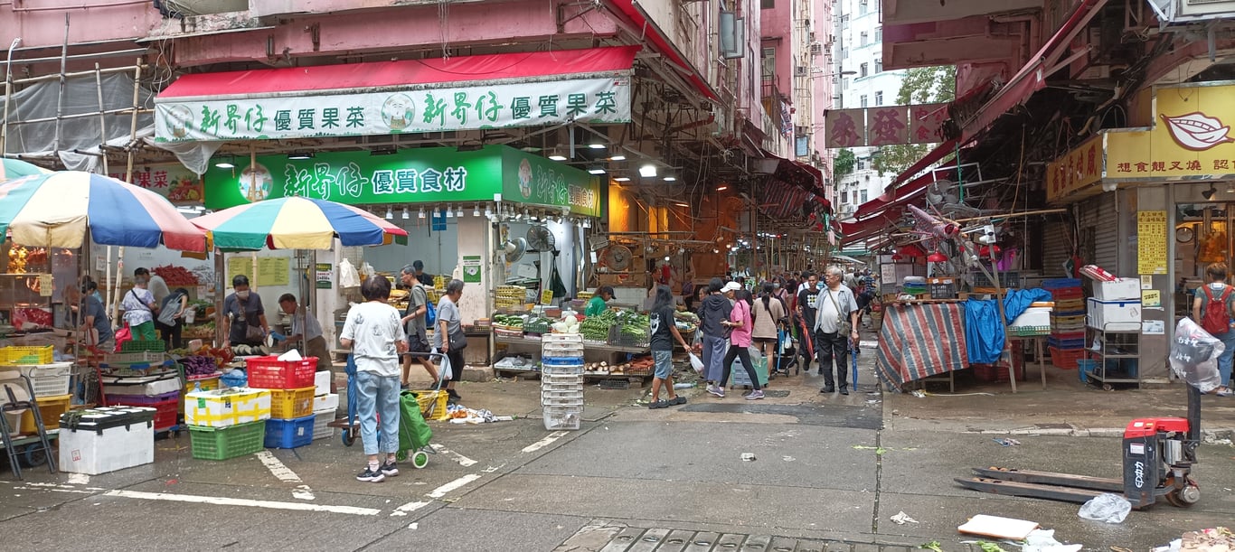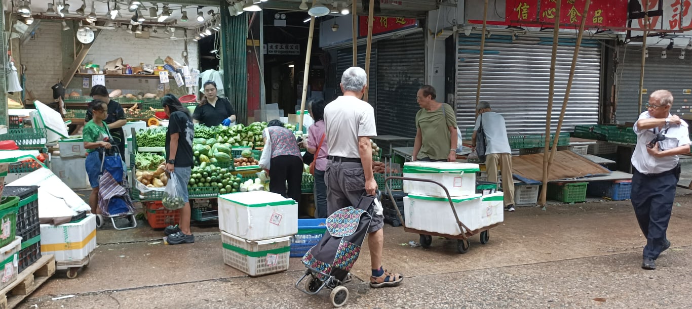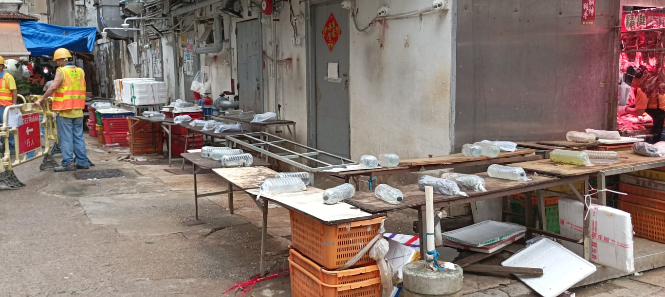早上的部份菜檔恢復營業,只是蔬菜的數量明顯減少,估計是昨天沒有來貨,今天賣的應該是前兩天的存貨,而且菜價應該也不便宜,只是沒前兩天那麼貴而已。部份菜檔更是空蕩蕩的,仍然停業。
