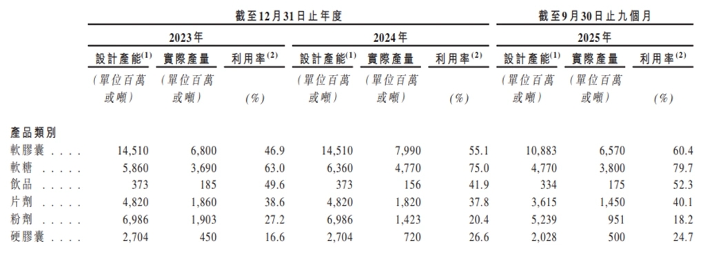 片剂、粉剂、硬胶囊的产能利用率,长期低于50%;