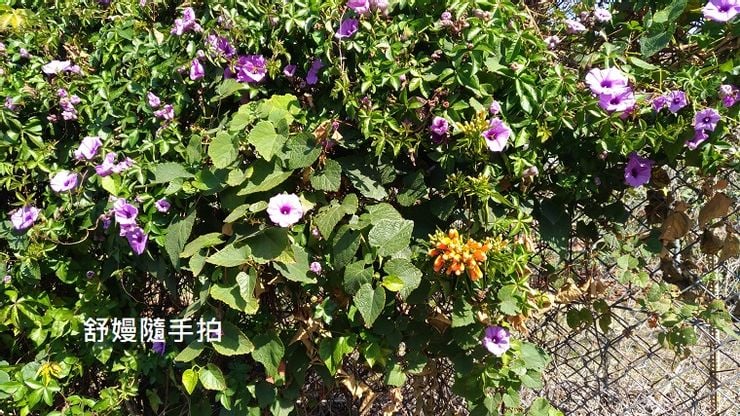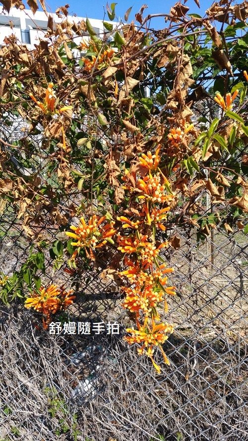 繞路停等紅燈時,順手拍下炮仗花,兒麗踢下我的鞋,