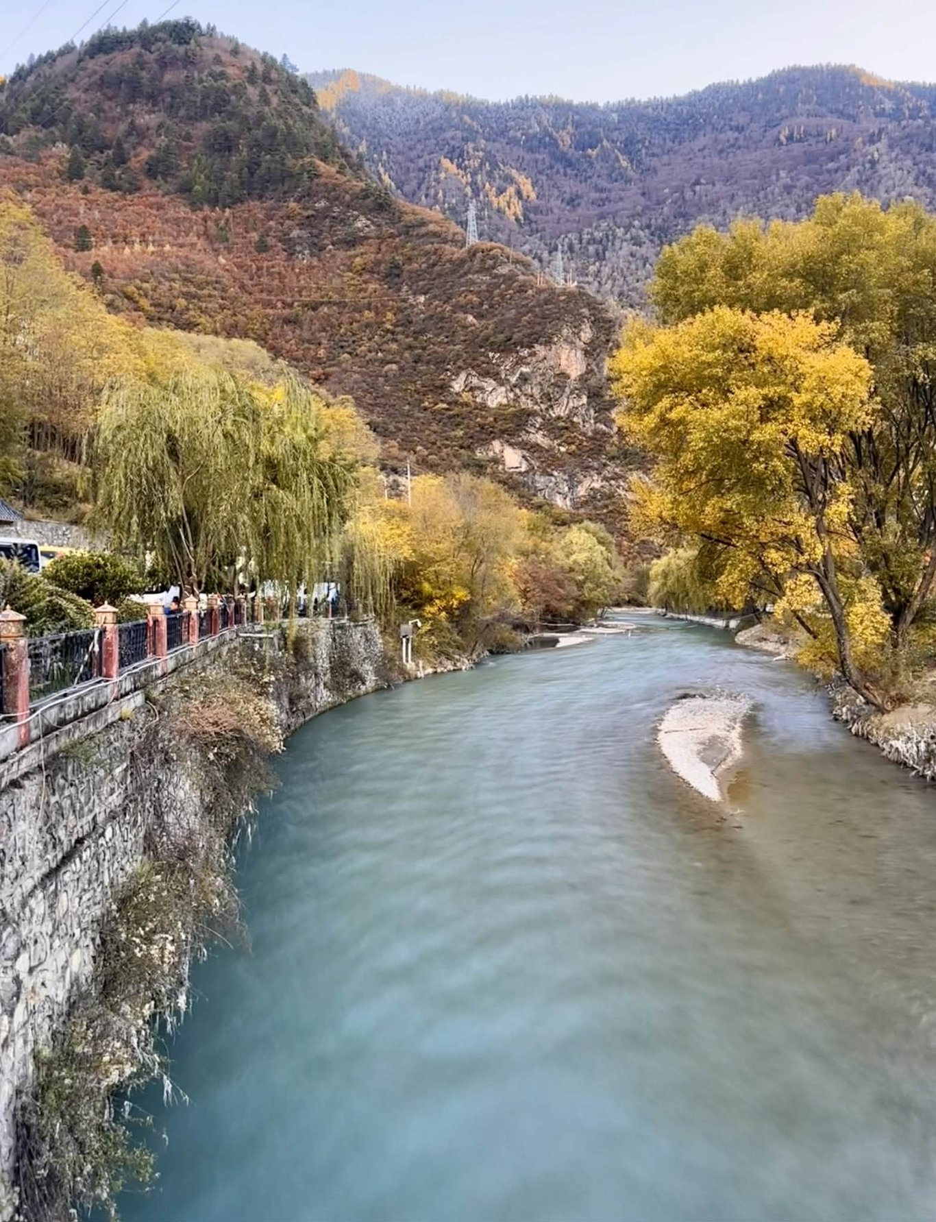 2個小時又2個小時,真正抵達住處已是下午時份。稍作安頓然後在附近散步,這裡的環境十分優美,遠方有綠中帶金的高山,眼前有水聲潺潺的河道,周邊有零星的商鋪食肆,挺不錯。