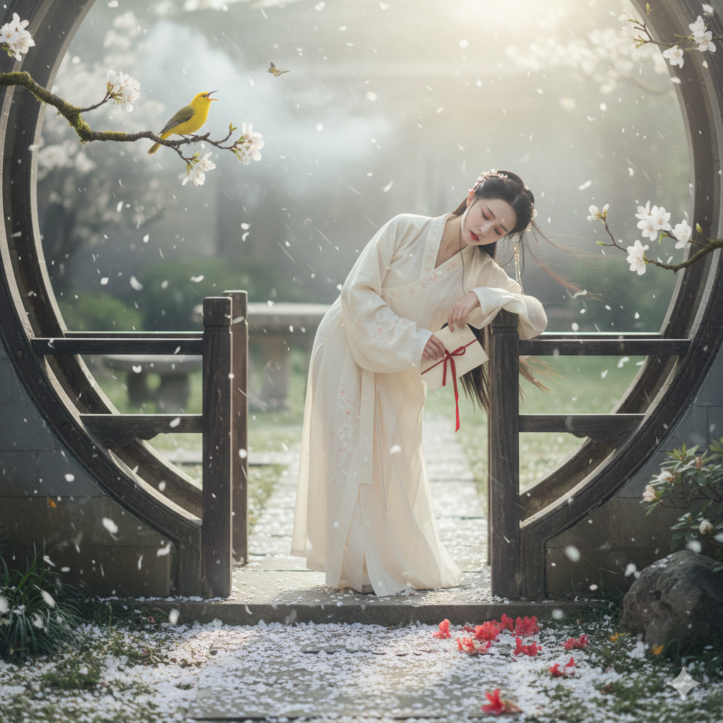 啼破韶华荏苒,听枝上、黃鹂声闹。