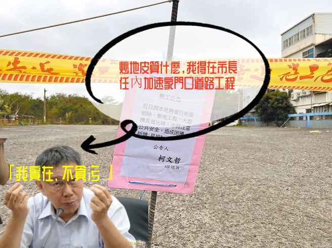 柯文哲的嘴臉:「我實在、不貪污」,卻在市長任內要求加速家門口道路工程,更不要說炒地皮。