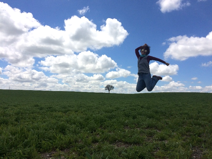 今天最後一段10公里的風景實在太驚人了!簡直就是Window的桌面嘛!我還錄了一段草叢中的蟲鳴 ... 以及曠野中的鳥叫 ... 感受到這些大自然的美,怎麼會不讓人想開心的跳呢?!