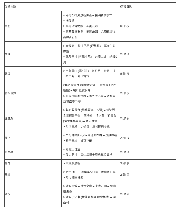 奢侈雲南遊︱附錄 – 旅遊景點 & 停留日數小睡·9 月 24 日·IPFS·翻译成简中雲南的18日旅程就此結束,最後來整理一下到訪過的所有景點以及停留日數給大家參考參考吧~ 大陸奢侈雲南遊旅遊CC BY-NC-ND 4.0 授权已推荐到频道:旅・居建议频道选择希望推荐到的频道(单选)生活事书音影旅・居性别/爱创作・小说时事・趋势身心灵没有适合的频道不参与频道推荐 (文章将出现在「还有」中)下一步喜欢我的作品吗?别忘了给予支持与赞赏,让我知道在创作的路上有你陪伴,一起延续这份热忱!支持作者支持作者小睡相遇即緣份,純粹做著自己喜愛的事。 https://travellerdays.com/来自作者相关推荐大坑舞火龍旅遊目的地 — 淺談世界遺產 (World Heritage)鐵道環島.亂遊台灣29日31 篇作品