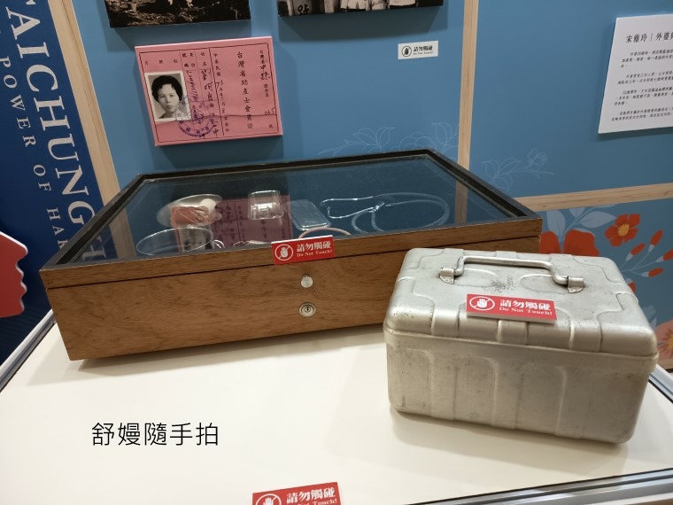 助產士的提包和產婆證照,小皮箱打開各式各樣的接生工具。