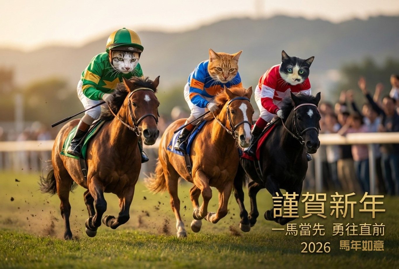 不過,雖然圖片標註的是 2026 馬年,但我得小小提醒你一下:其實 2026 年在生肖上是「馬年」沒錯,但這張圖的創意確實把「馬年」發揮到了極致——連騎士都變成貓了!