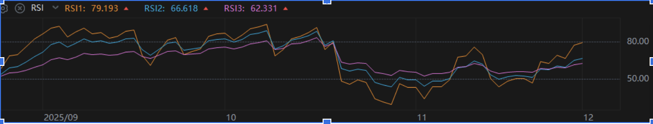 大家看,目前的走勢雖然強勢,但RSI指標,也就是相對強弱指數,已經進入超買區域了。什麼叫超買?簡單說就是短期買的人太多了,價格漲得太急,就像一根彈簧被壓得太緊,隨時可能有回彈,也就是回檔的風險。