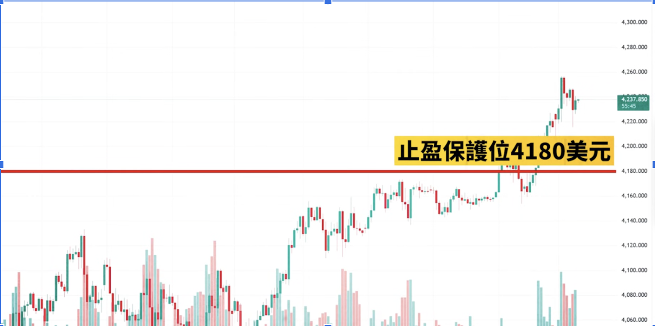 而對於想進場但還沒進場的朋友,最重要的一點就是切忌在衝高時盲目追漲!我們要耐心等待回檔的機會。可以聚焦在價格回檔到4180-4200區域企穩時的機會,或是等待價格確認突破4250後,在回踩確認時再考慮介入。