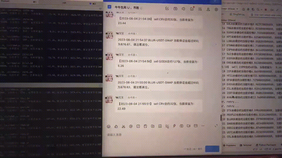 上图中展示了 APT 和 PEPE 两个币的操作,"B"代表买入点位,“S”代表卖出点位,这是典型的“低吸高抛”策略的例证。采用这种思路,每日获取几百USDT(约两三千人民币)的收益较为常见。