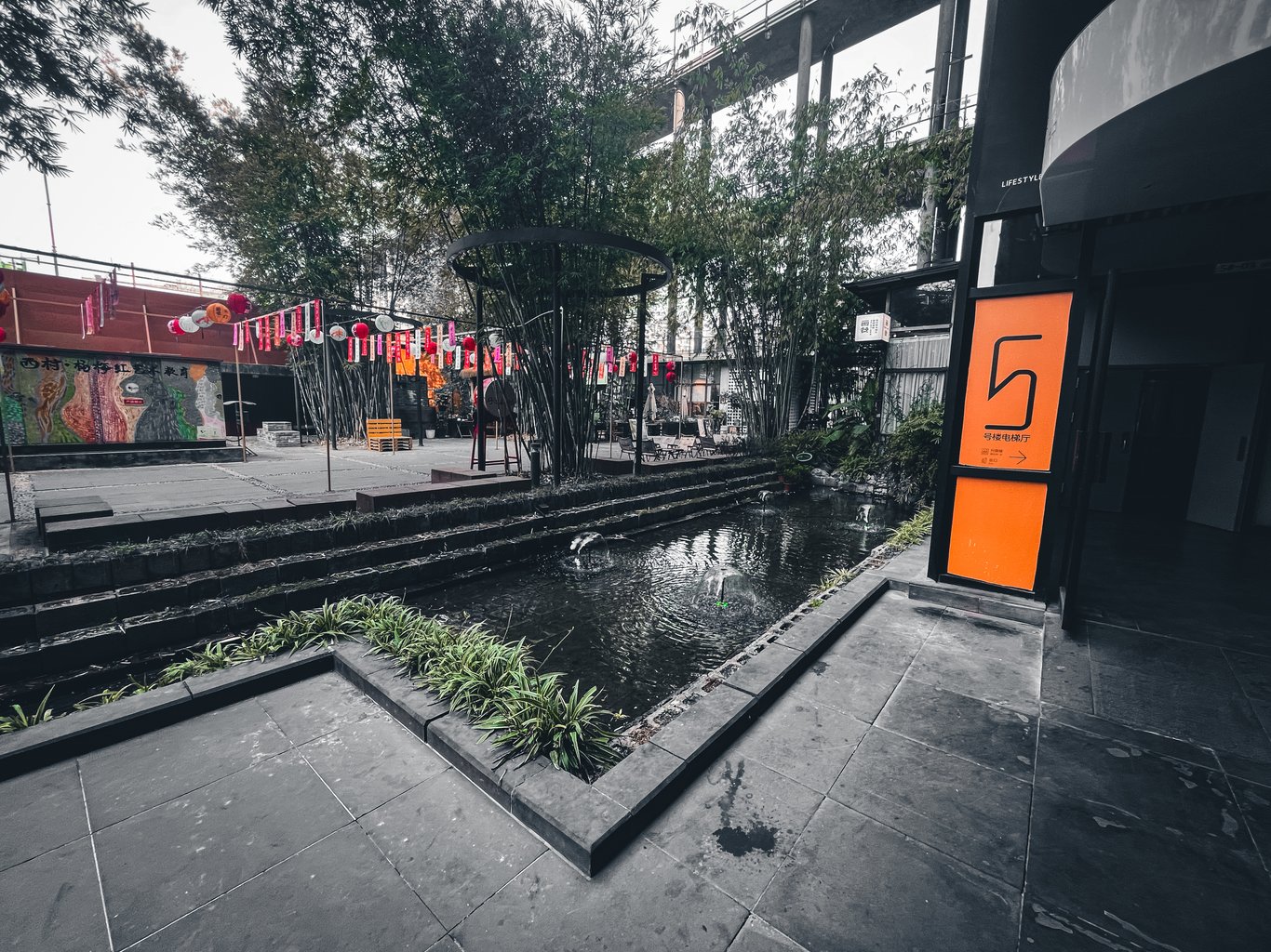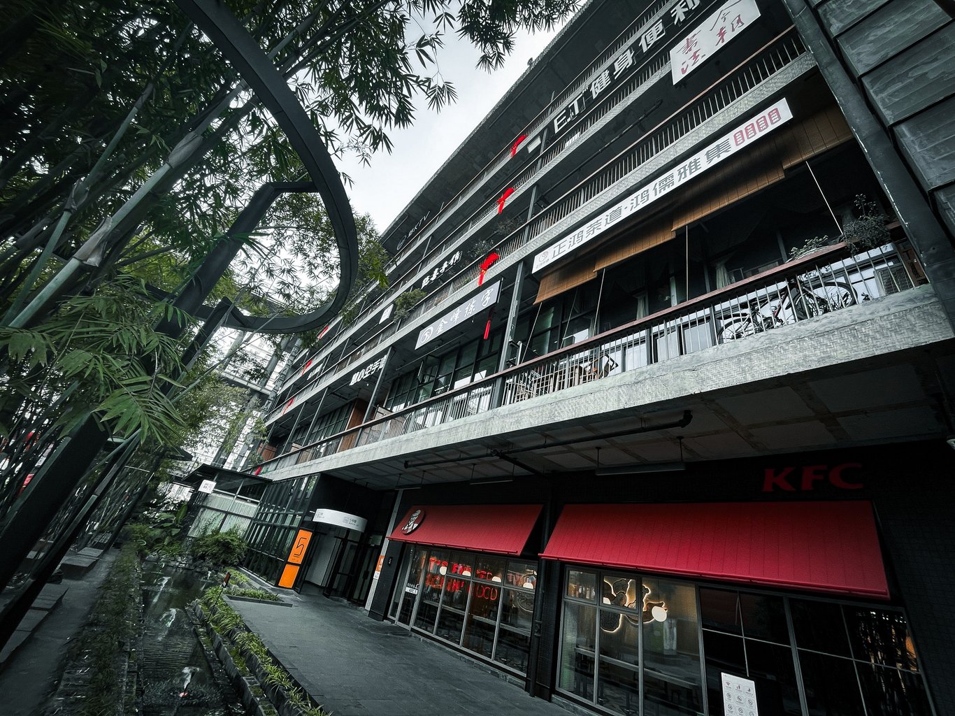而建築 1-2 層為開放式商鋪、無遮擋的外擺區域,完全契合成都「市井休閒」的生活習性。這裡沒有傳統商場的門禁與封閉門面,隨處可進入的廊道、留足的公共空間,讓它不只是一個打卡地標,更是一個融合了居住、辦公、商業、休閒的「開放式社區」,也是成都城西年輕人的文藝與夜生活聚集地。