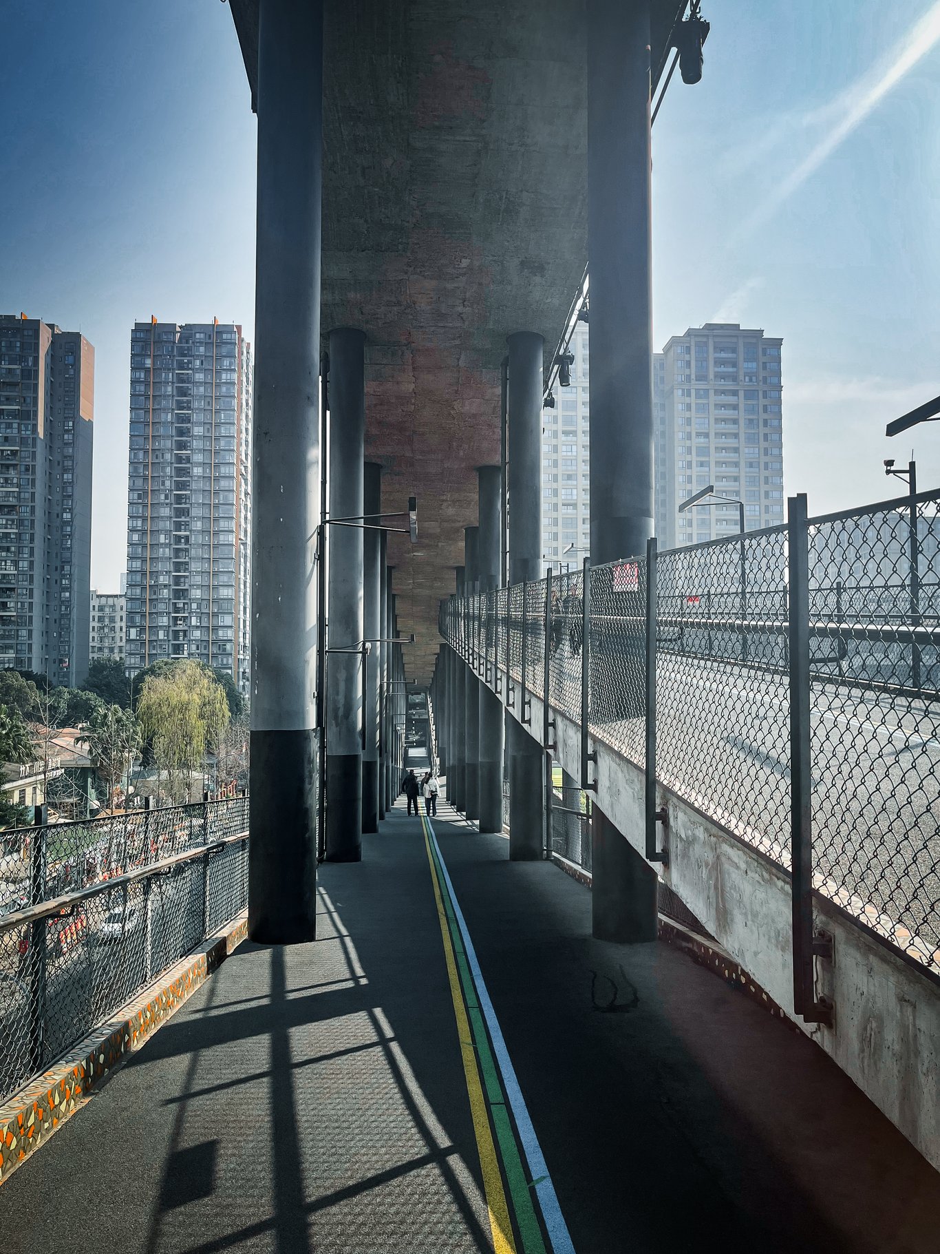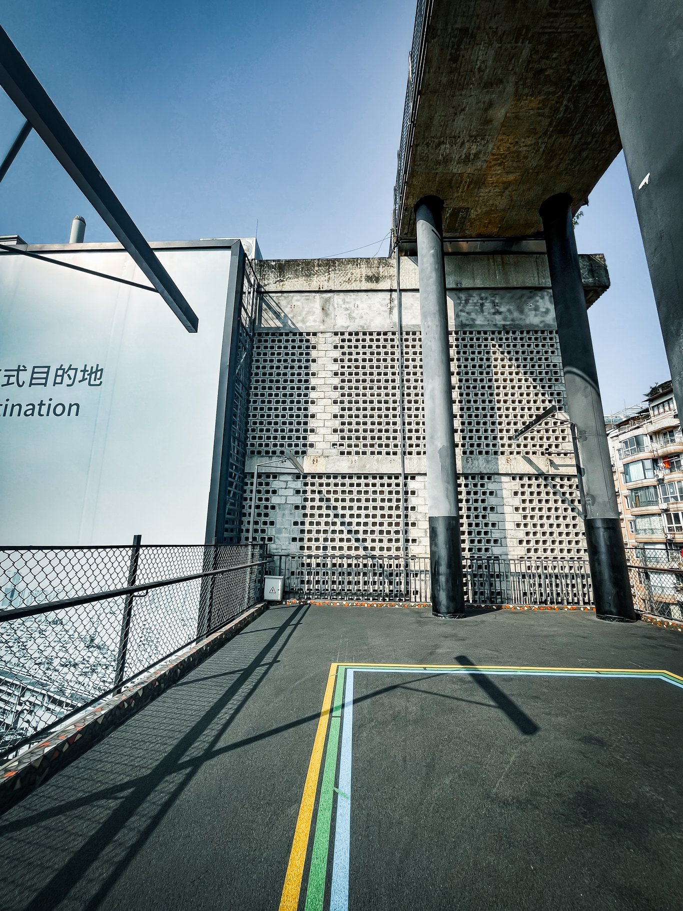 事實上,除了空中跑道外,西村大院的二樓也有跑道。在我的認知與觀察裡,這裡不僅僅是跑道,也是四面環繞中間籃球場與足球場的觀眾席,建築物本身將運動者、參賽者、表演者、生活者、販賣者、展覽者的角色一次融入進這塊區域裡。這也絕非范姊用三言兩語的「西村大院它讓我感動的地方就是在他跟平民的生活貼得非常的近。而且它跟周圍的那個成都的市區的氛圍也融合在裡頭。所以說它是一個,它真的是深入平民的生活的一個藝術建築作品這樣子」能夠說明。