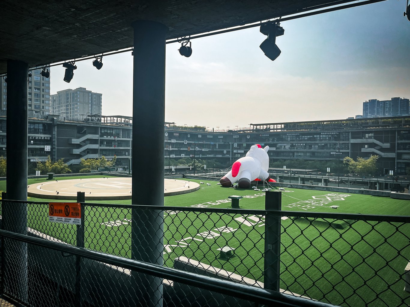 畫面右側帶有「H」標識的綠色屋頂,則是西村大院的屋頂直升機停機坪,也是成都城西少有的民營商業體配套屋頂停機位。平時不執行飛行任務時,這裡會作為戶外市集、主題展覽、活動策展的靈活公共空間。