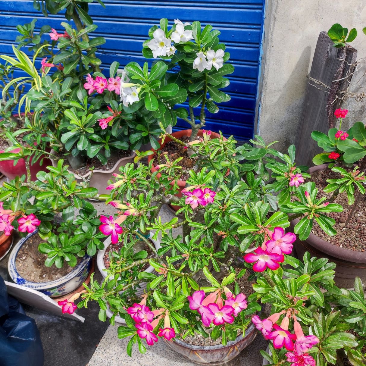 要不是前陣子@Flora異想 有拍沙漠玫瑰,我隔天駐停巷口幾秒確認沒車,轉頭看到它們,這才驚覺...,阿這不就是沙漠玫瑰?啊我這三年多不是每天都在看嗎?