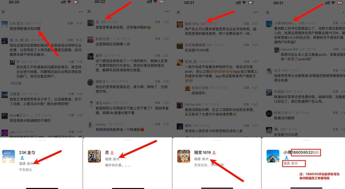 其中一位老哥名字都不装一下,直接把自己手机号写名字里,而 `186 0595` 开头的手机号正是泉州联通员工专属号段