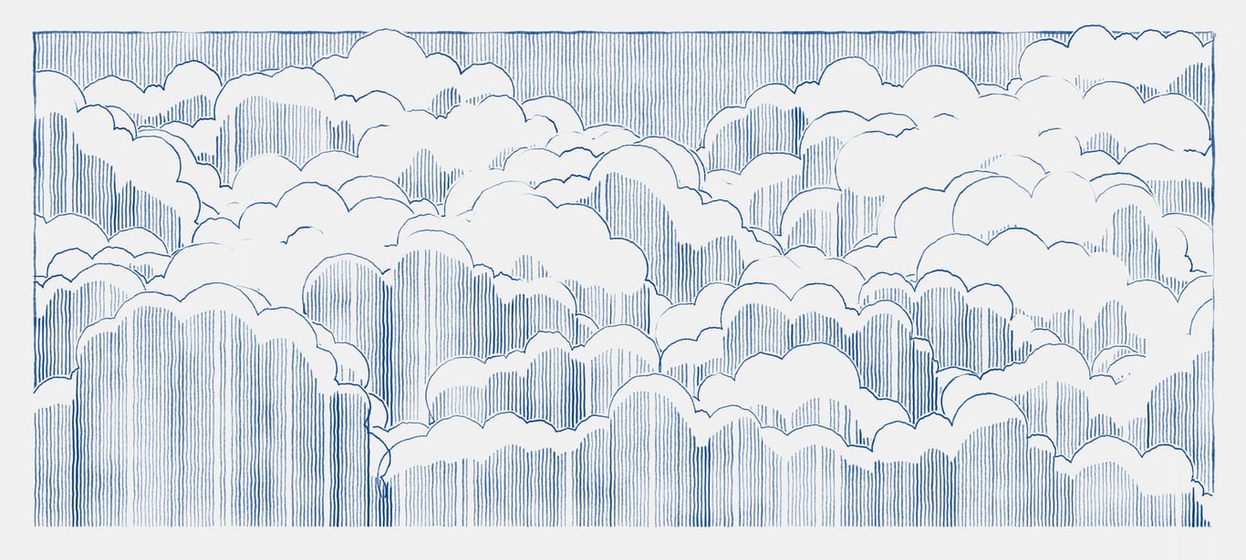 這件是老師的作品,超級酷!能夠從頭到尾看見一幅畫的生成,從藍線填滿、多重圓圈交錯、沿著這些基礎再做出一層層的雲,充滿了生命感,很好奇老師是如何產出這件作品的靈感~