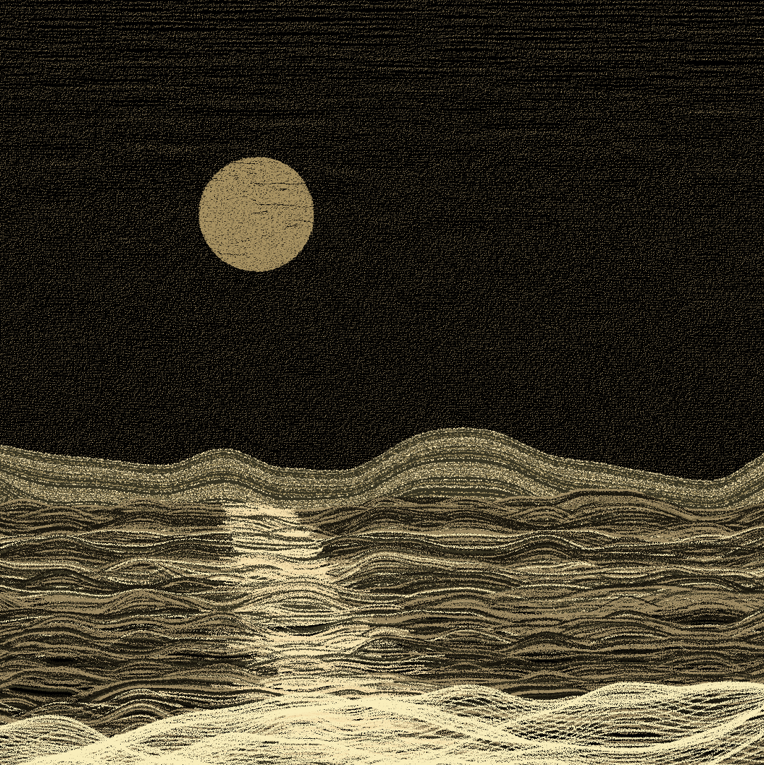 根據太陽和月亮的角度變化,做出光影方向,並生成多層海浪,作品很有意境!