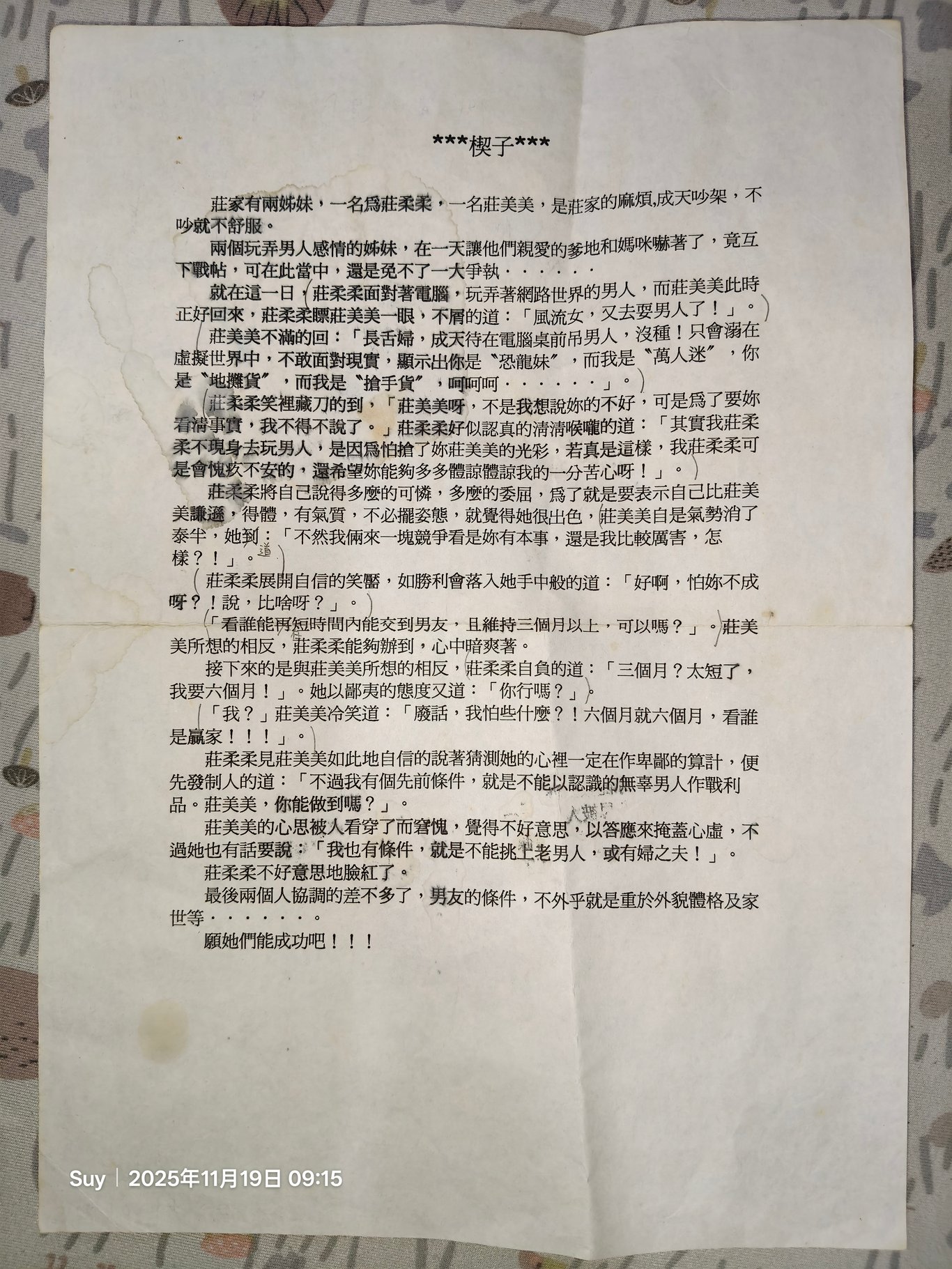 我負責莊柔柔的支線,乾妹負責莊美美的支線。