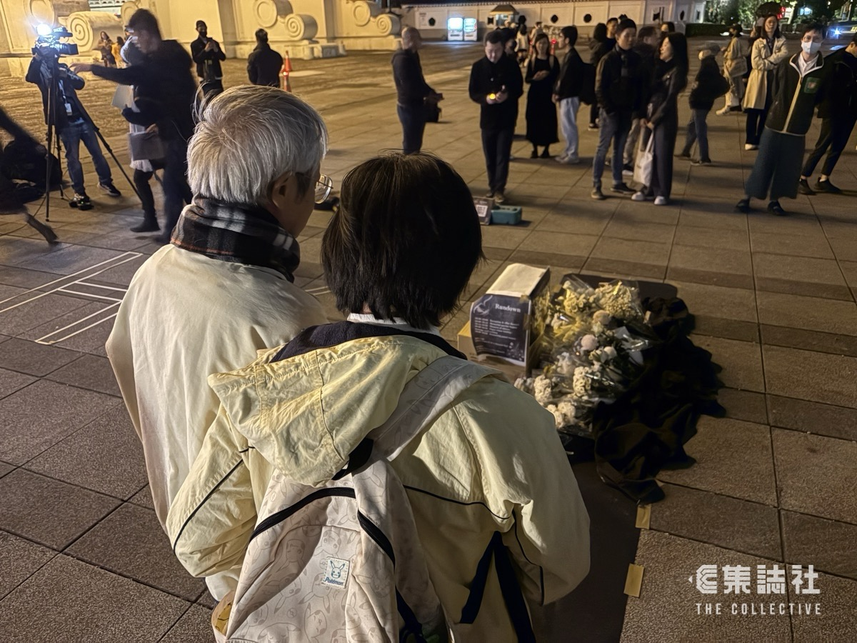 符太表示,身在台灣未能參與香港的悼念,內心一直戚戚然,過去幾天一直在網上找尋,有沒有台灣悼念活動的消息。她感謝,有團體在自由廣場舉辦悼念活動,即使獻花和鞠躬,不會讓她的不安和心痛消失,也希望盡一點力,隔空向老街坊們表達慰問的心意。她表示,看到有幾百人出席悼念活動,有感離開香港的港人,仍然是很關心香港。