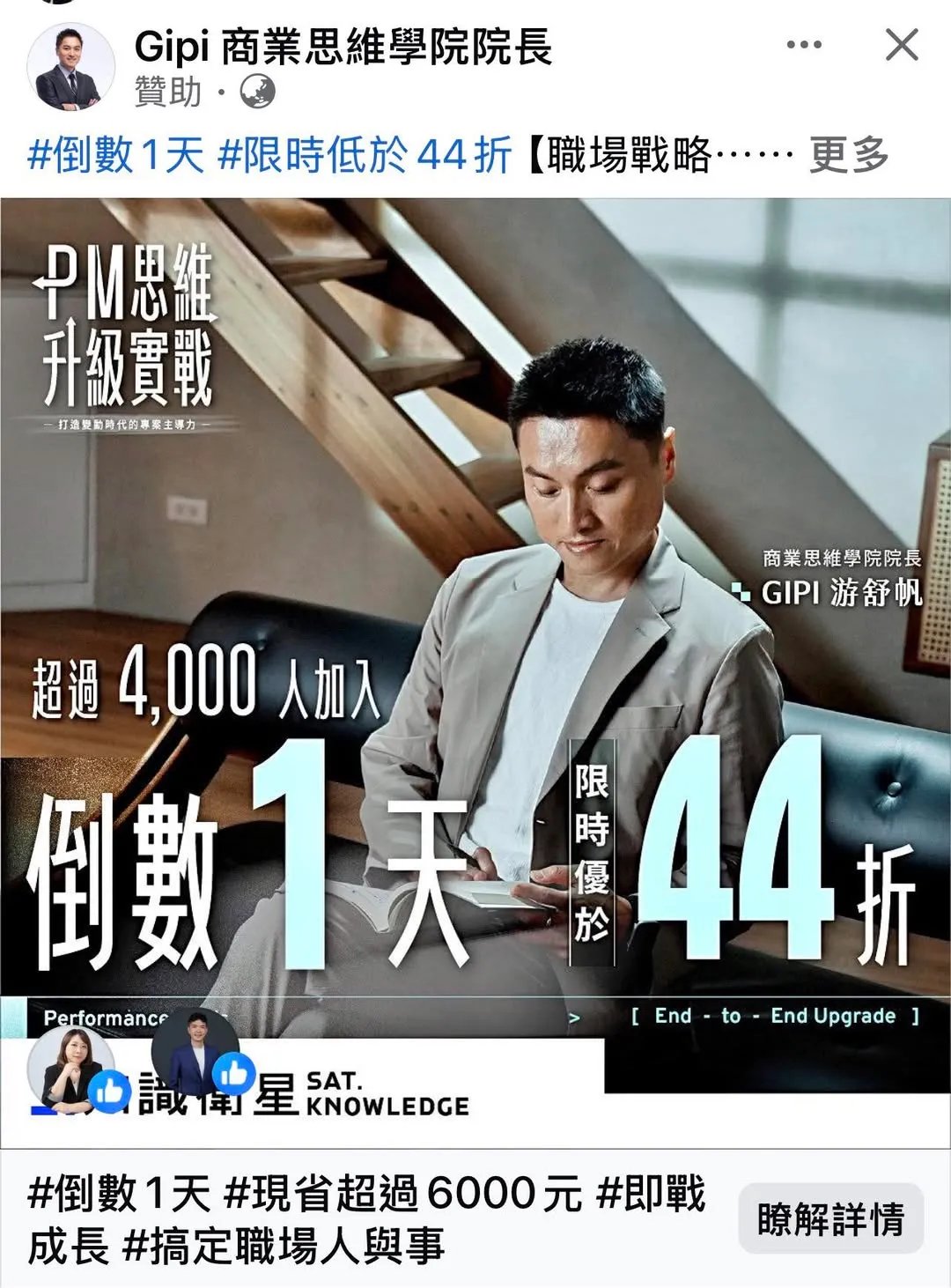 2)「超過 4000 人加入」「PM 思維升級實戰」
