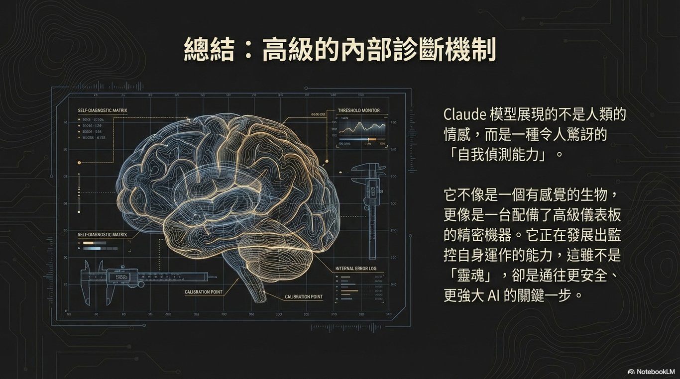 它可能代表 AI 正在發展出更複雜的內部監控能力,但距離真正的「心靈」或「自我感受」,仍然有極大的差距。
